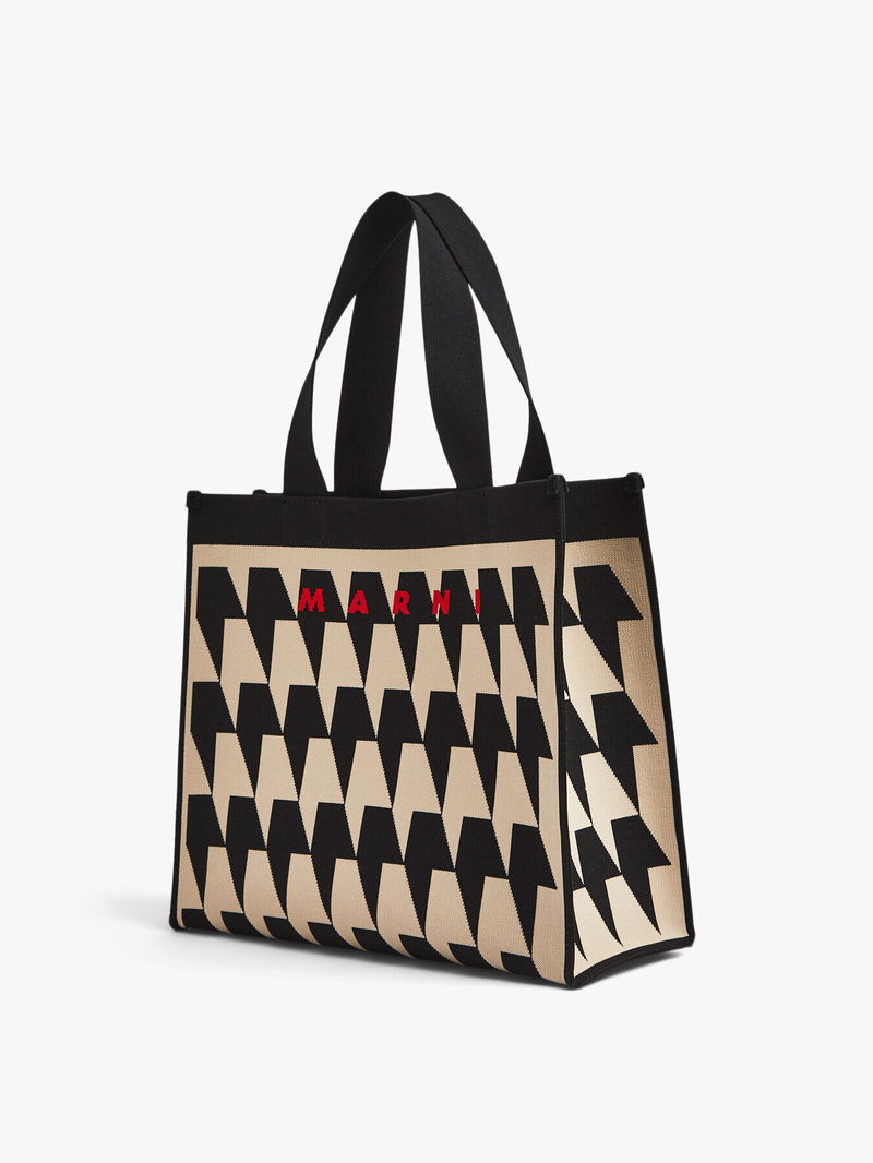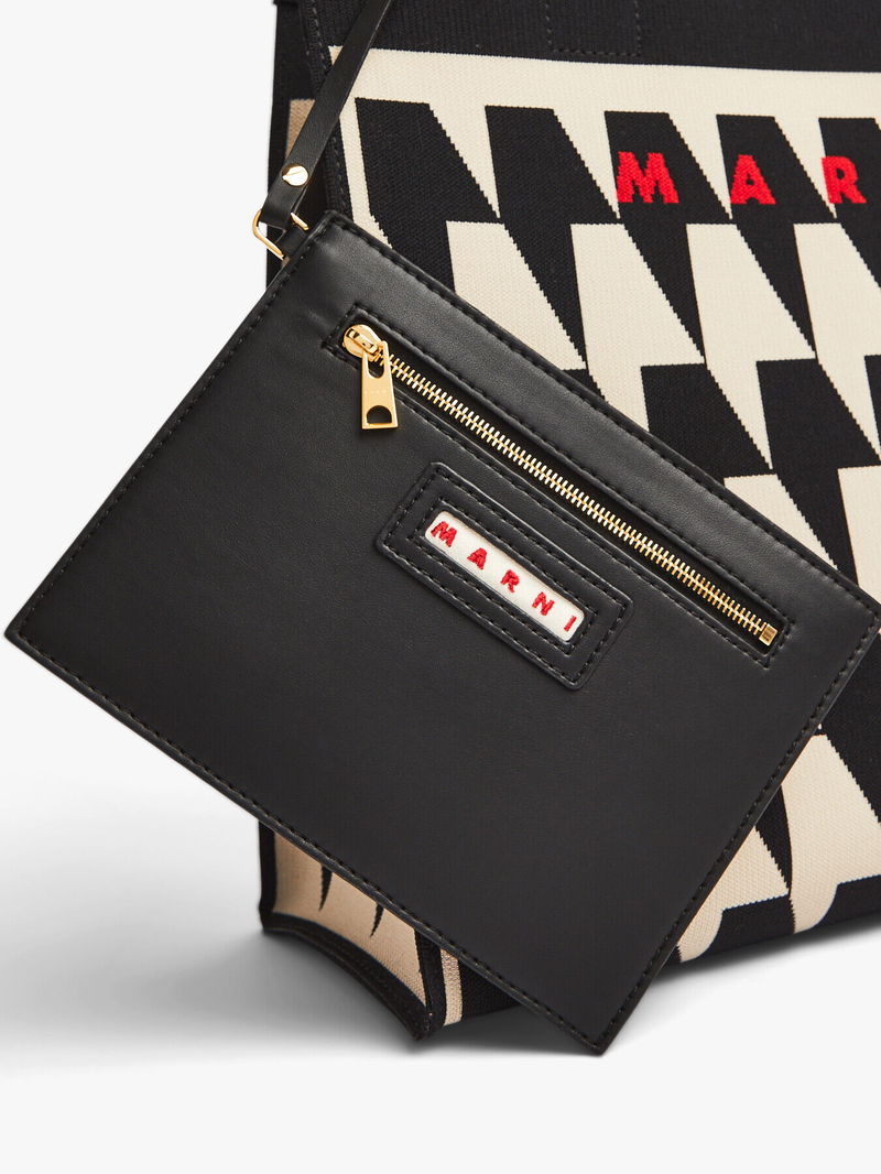 Every closet needs that one perfect staple bag and Marni serves just that with their Navy Tote. The bag boasts minimalism and style with a soft finish punctuated over a trendy black colour block design. Bordered with a contrasting brown hue lifting up into a double handle, this accessory can pull together any look while keeping room to carry your day’s essentials. Sling it on for a mall-run or to sit next to you on the table of a summer brunch. Signature MARNI branding is seen throughout