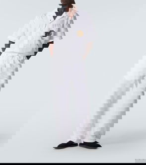 Short-sleeved bowling shirt, made from tropical wool. Boxy fit with patch pocket on the chest and canvas Marni label on the back yoke. Can be worn with a bowling collar or fully buttoned up.