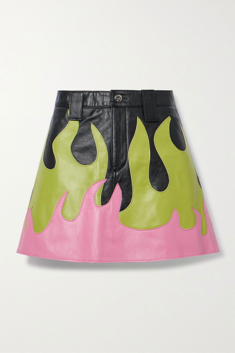 Marques' Almeida's Fall '23 collection channels a cool, Y2K spirit. Modeled on the runway, this mini skirt made from supple leather that's strategically paneled to depict flames. It's thoughtfully lined with smooth satin.