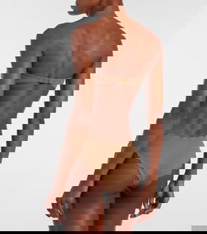 Marysia’s most recognizable feature is the hand-cut scalloped edges that do without stitching or elastic for a more flattering fit. Complete with the brand signature, the Antibes bikini top is a classic bandeau style.