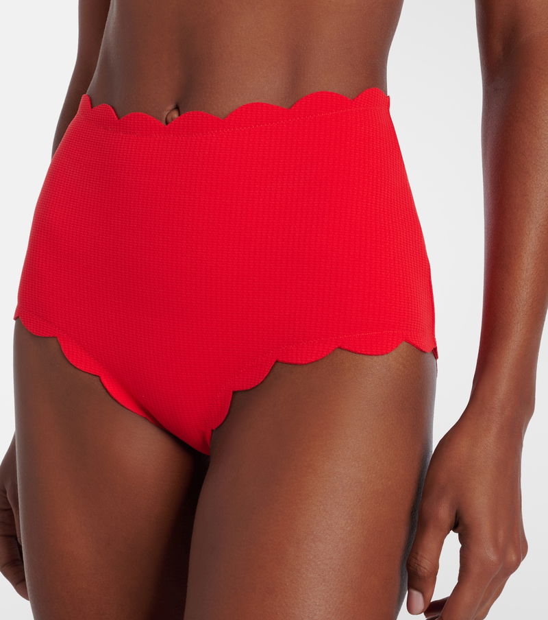 Marysia’s most recognizable feature is the hand-cut scalloped edges that do without stitching or elastic for a more flattering fit. The Santa Monica bikini bottoms are a high-rise style designed for optimal coverage.