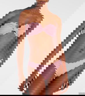 Marysia’s most recognizable feature is the hand-cut scalloped edges that do without stitching or elastic for a more flattering fit. These high-rise bikini bottoms have a waffled texture and offer moderate coverage.