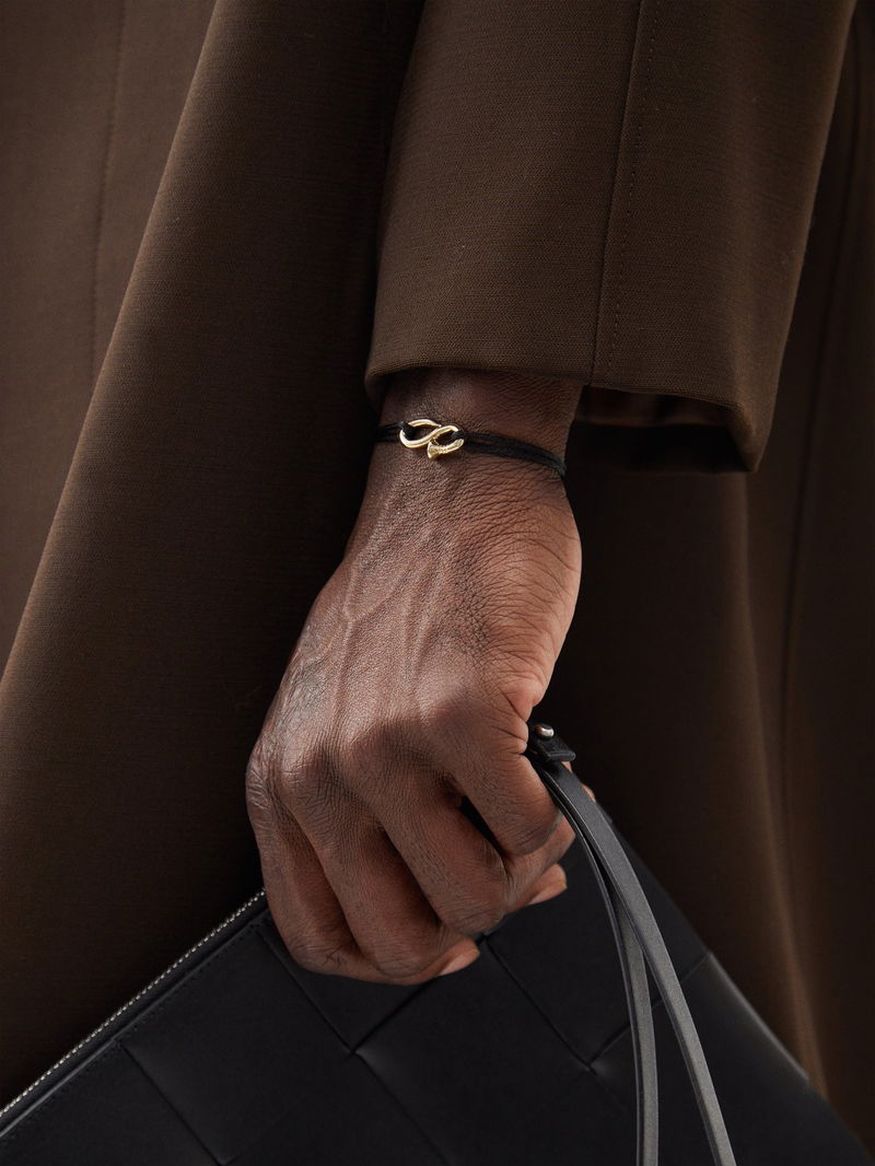 Matthew Harris dips into the toolbox for inspiration with this Mateo bracelet. Handcrafted in the label's New York workshop from polished 14kt gold, it has a bent nail-shaped charm strung on a black cord for an understated accent.