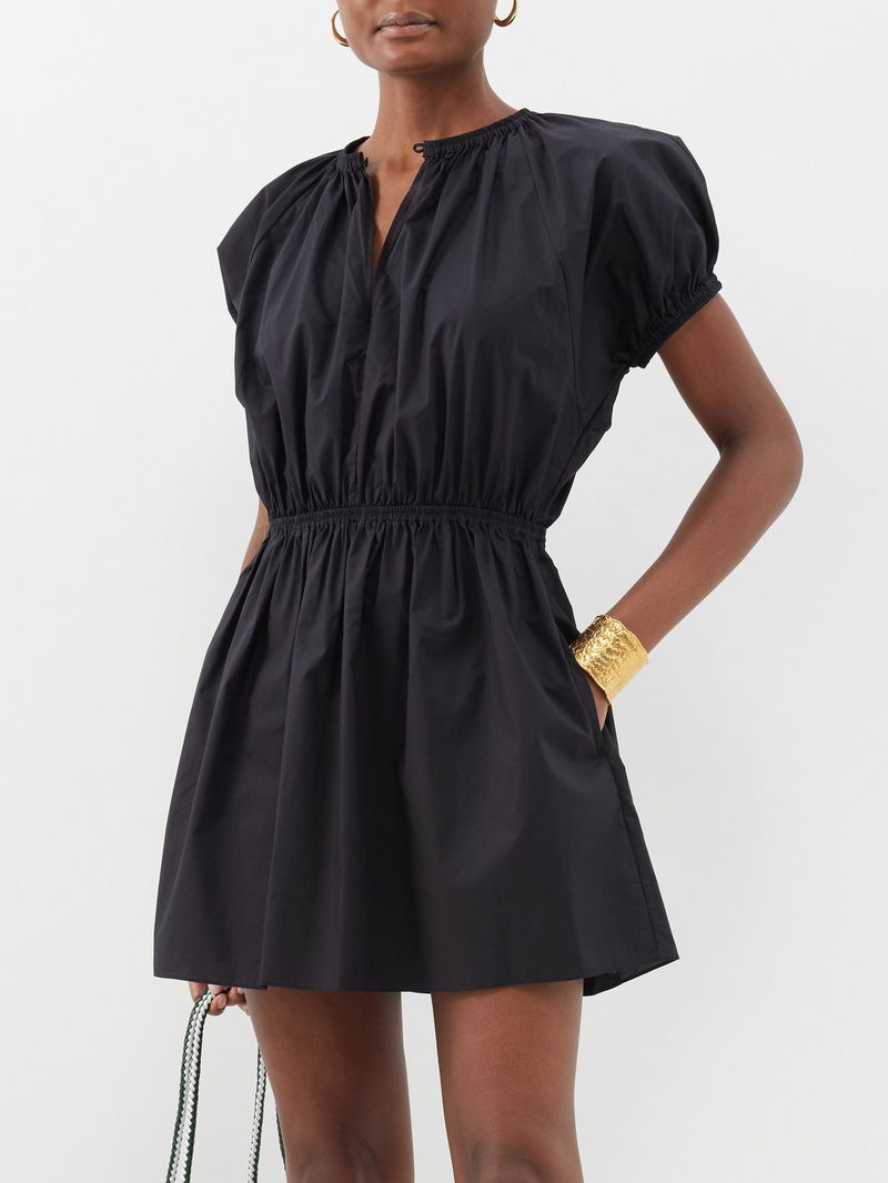 Made in Matteau's native Australia, this black Cocoon mini dress is crafted from lightweight organic-cotton poplin with gathers at the neckline and waist.