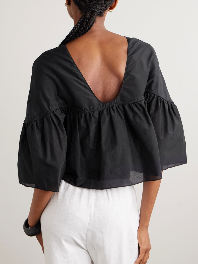 Inspired by the ease of coastal life, Matteau designs with considereation and ease. This breezy blouse has been made in Australia from organic cotton and silk-blend and gathered throughout to enhance its relaxed shape. Wear yours with drawstring pants and sandals.