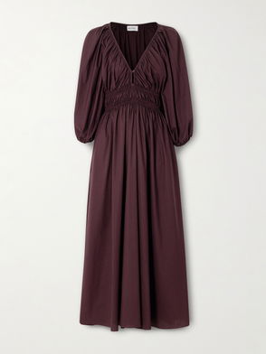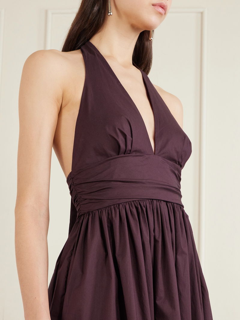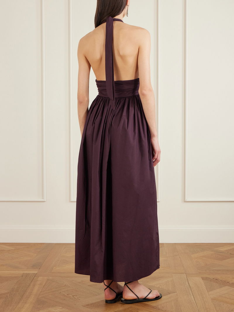 The clean-lined simplicity of Matteau's collections has earned its place in the wardrobes of some of the world's best-dressed women. This maxi dress is cut for an elegant halterneck profile from crisp, airy organic cotton-poplin. It's gathered at the waist and falls to a loosely pleated skirt.