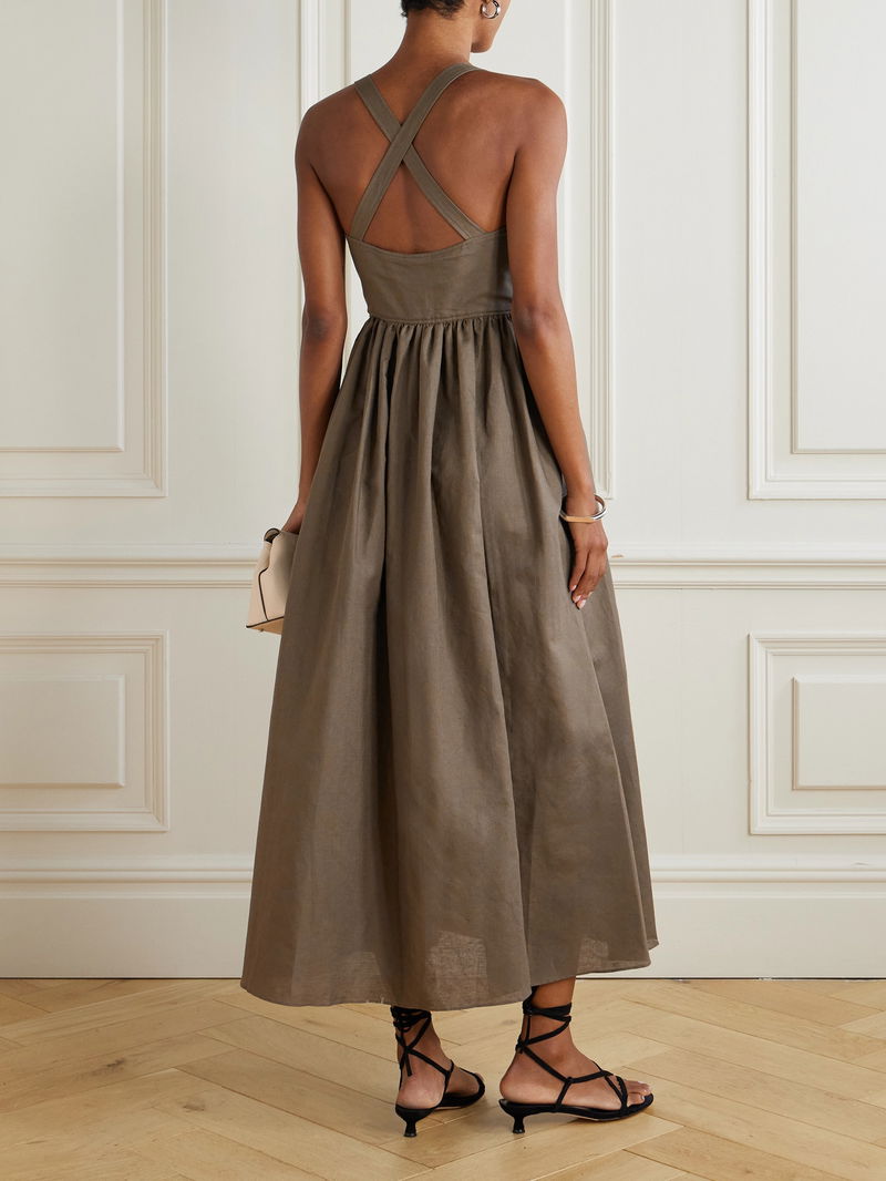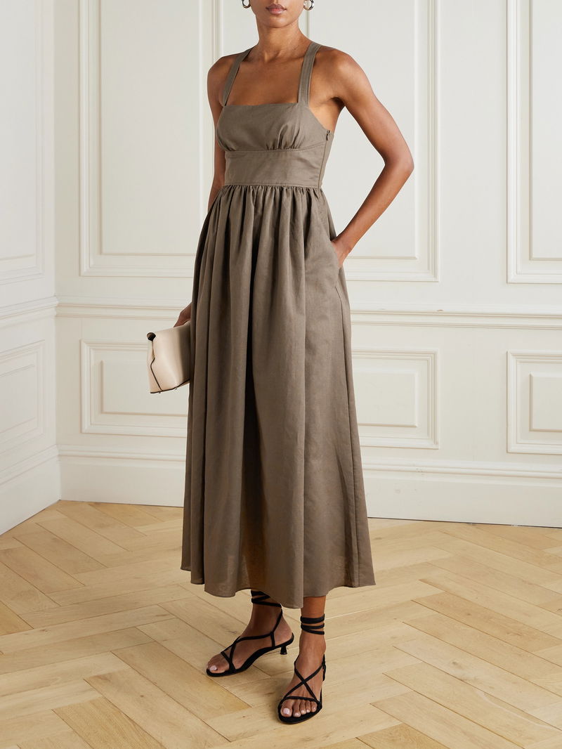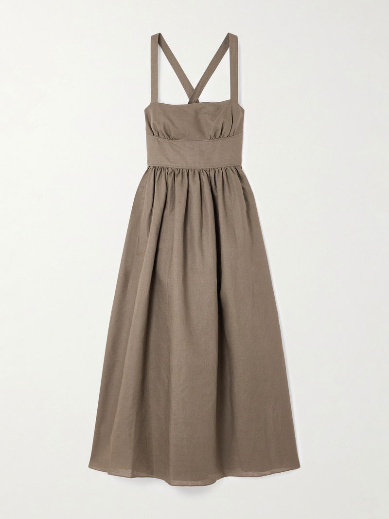 Matteau's midi dress is a testament to the art of effortless style. Made from airy linen and cotton-blend, it has a smooth, curved panel below the bust and a gathered skirt that offers plenty of movement and volume. Ground yours with understated flats or sandals.
