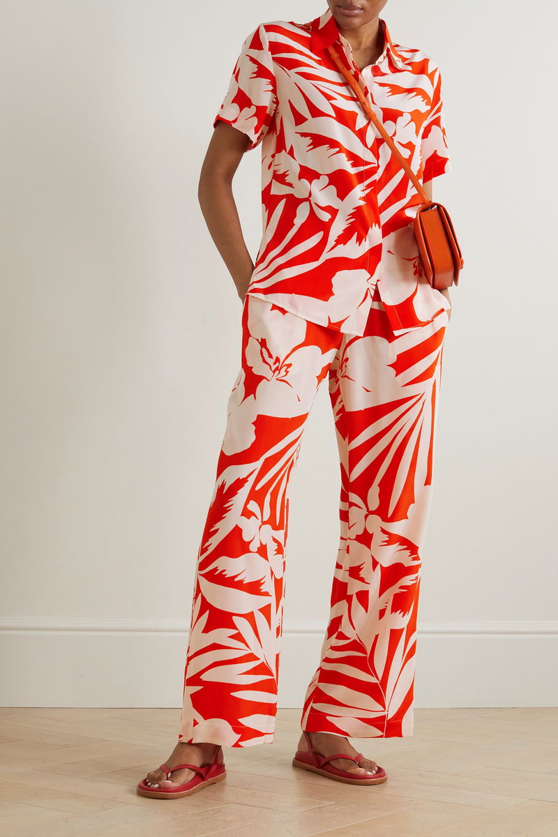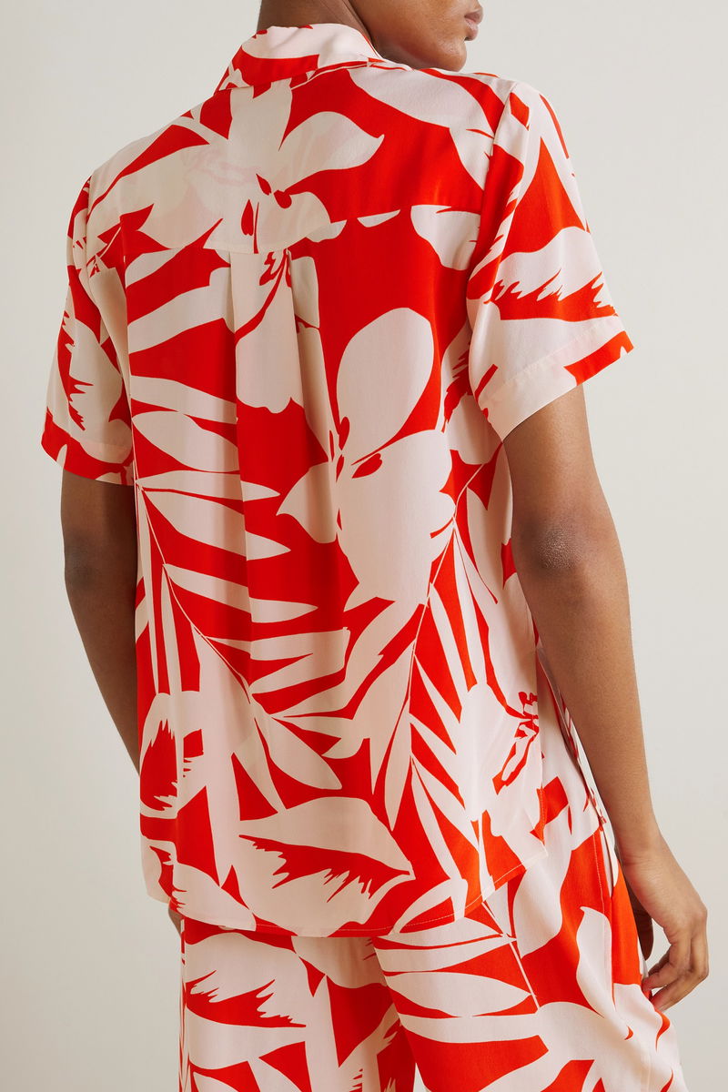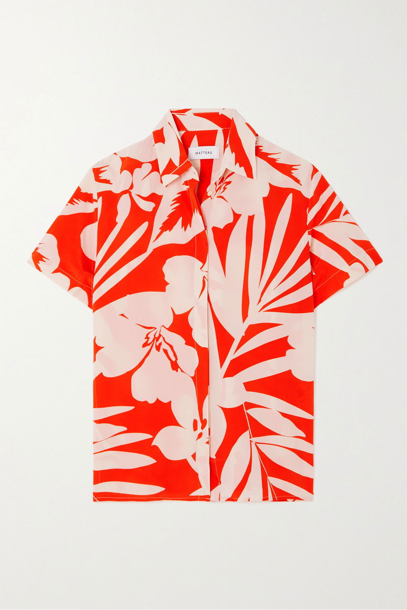 Australian label Matteau creates more sophisticated beachy styles. This short-sleeved shirt is made from certified organic silk-crepe and emblazoned with a tropical palm print. We love it styled with relaxed pants.