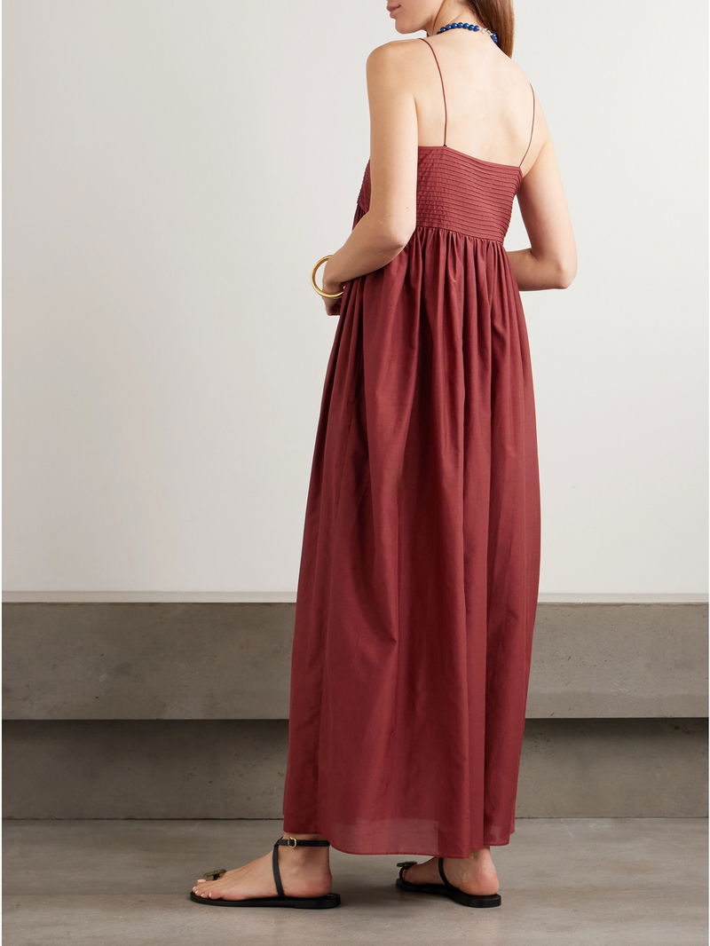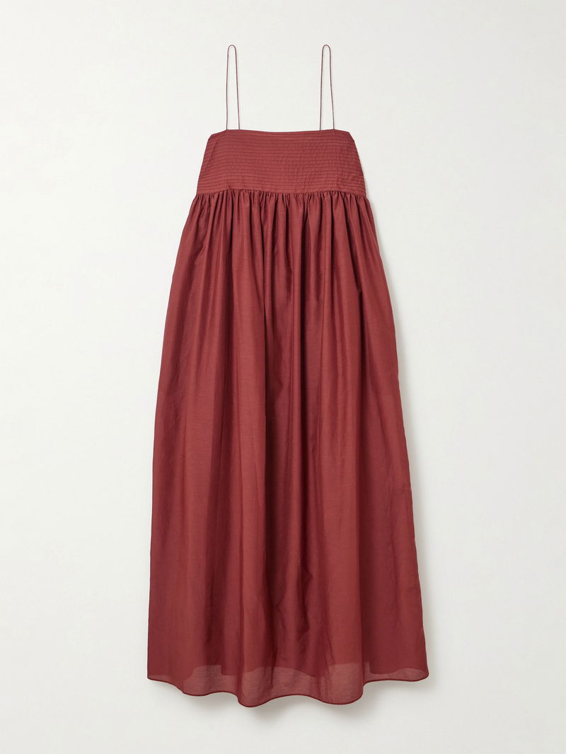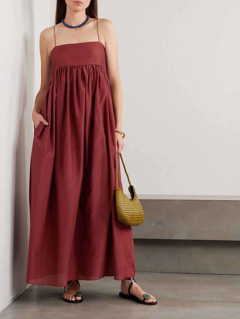 Chic minimalism is Matteau's specialty, with beautiful lines and thoughtful details that ensure timeless designs. This dress is made from organic cotton and silk-blend that's pintucked at the bust and gathered at the empire waist to enhance the floaty feel of the skirt. The straps are particularly slim.
