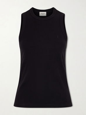 This versatile black tank is made from a soft and stretchy ribbed-knit blended with 79% certified viscose and has a scoop neckline.