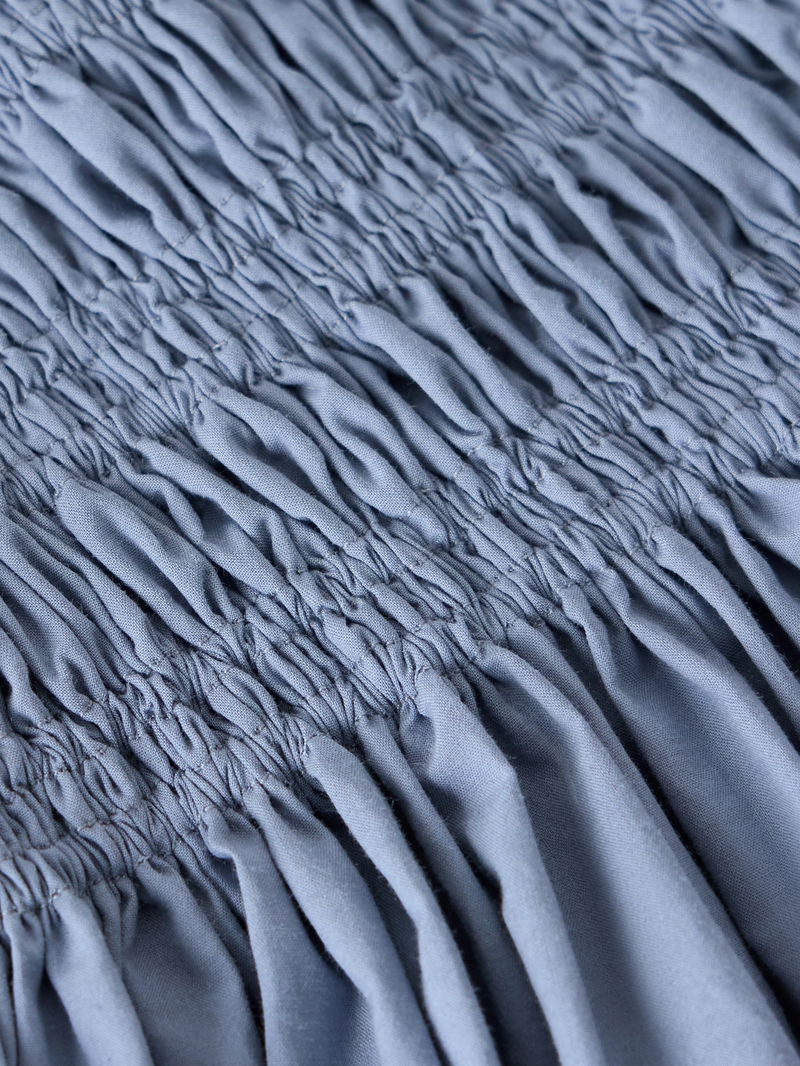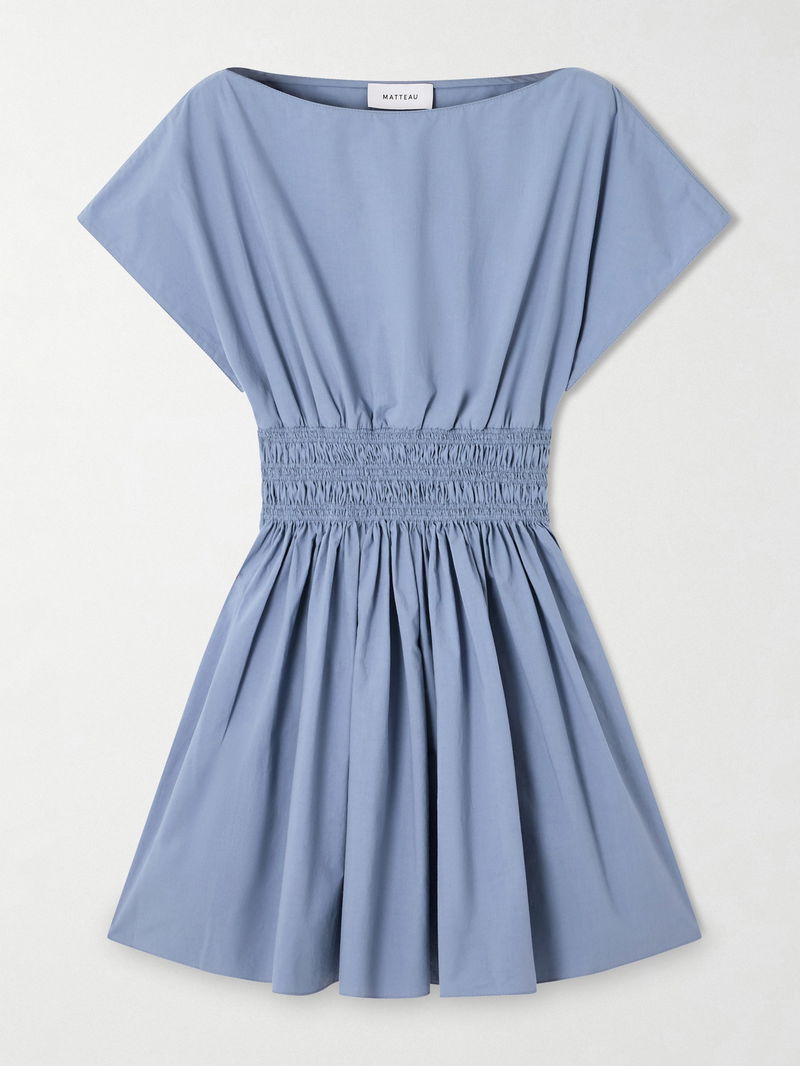 Matteau's dress is made from organic cotton and has an elegant batteau neckline and shirred waist that defines your figure. Discreet pockets in the A-line skirt enhances its casual feel.