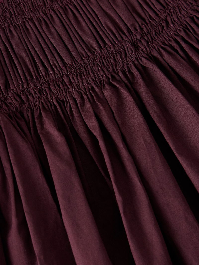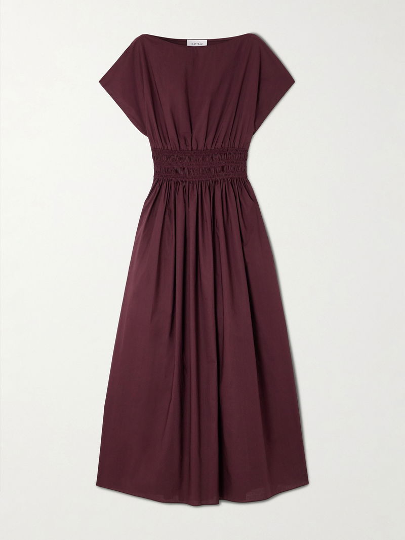 Matteau's dress is a chic warm-weather style that's just as suited for the office or weekend plans. It's made from breathable organic cotton-poplin that's shirred to cinch and define the waist and has cap sleeves and a floaty, gathered skirt.