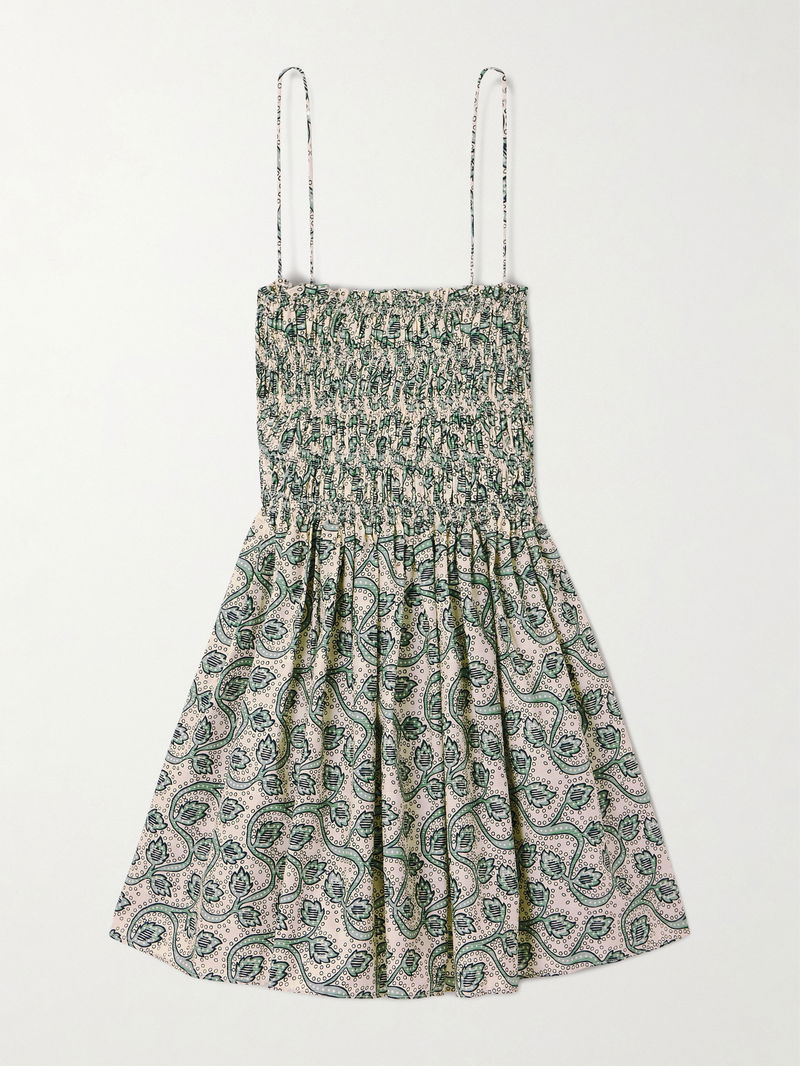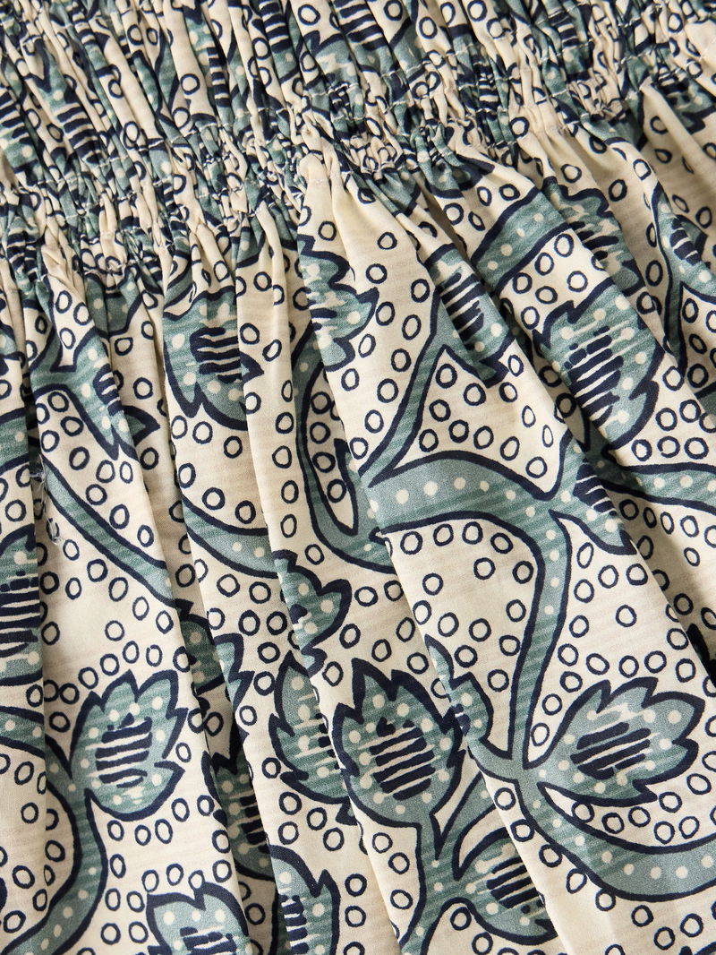 Matteau's dress is cut from organic cotton-poplin and printed with swirling vines. It has a close yet flexible shirred bodice and falls to a flowy mini skirt.