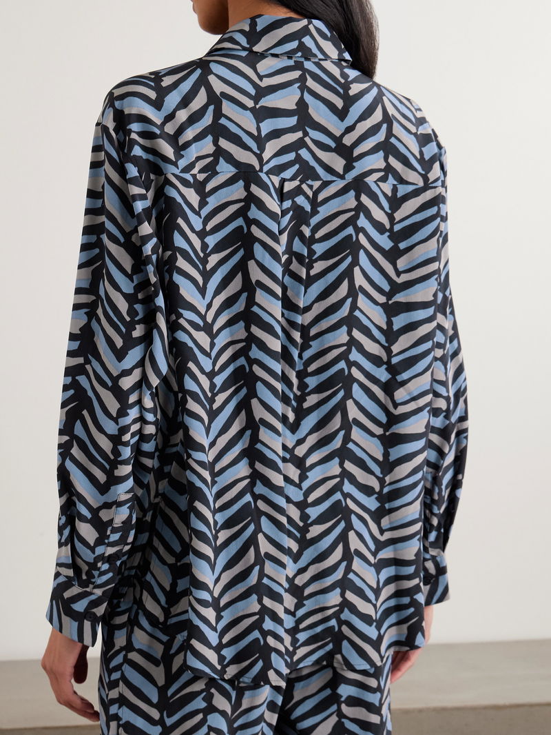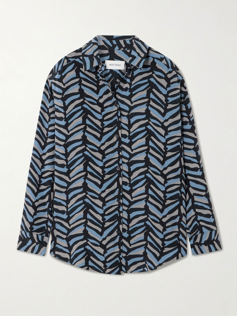 Matteau’s shirt captures the brand’s refined minimalism. It's cut from fluid silk crepe de chine in a relaxed shape and printed with an abstract 'Palermo' pattern. Dress it up or down, depending on the occasion.