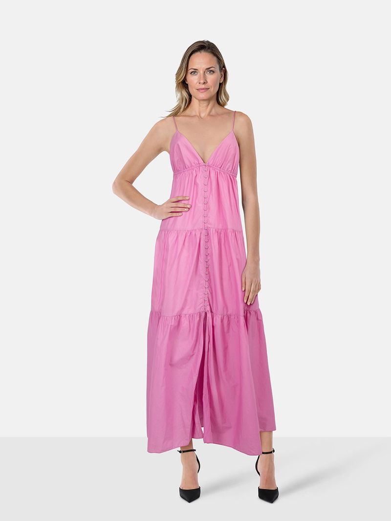 Matteau creates elegant pieces ideal for summery weather. Locally made in Australia from organic cotton-poplin, this maxi dress has a loosely tiered silhouette with pin-thin shoulder straps. Ground yours with neutral sandals.