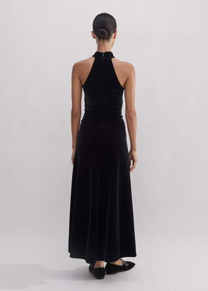 It's made from fluid viscose with a halter neckline and a front cutout – accented with subtle logo detailing.