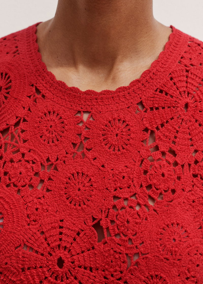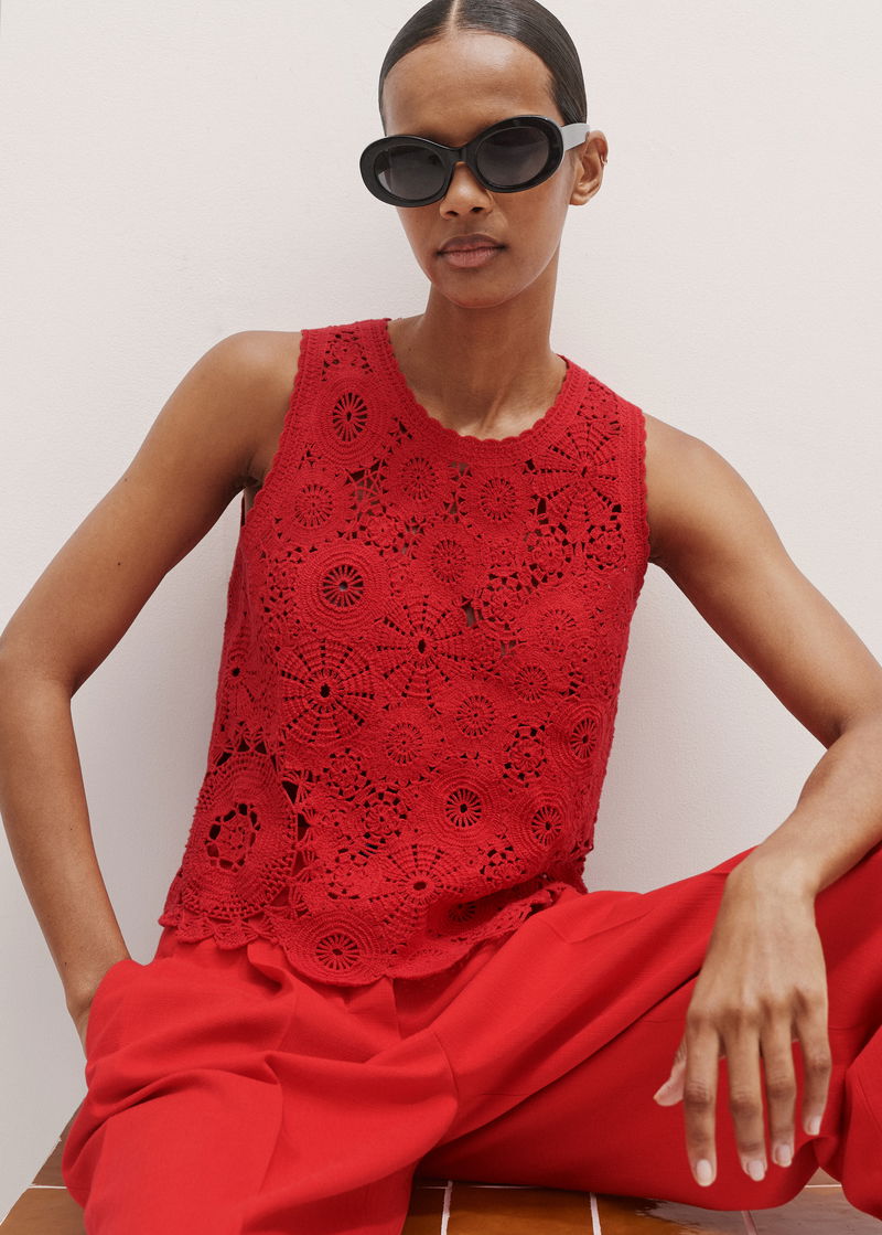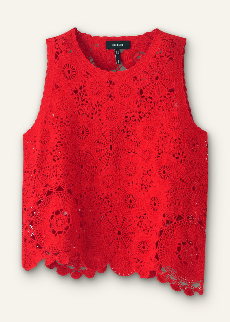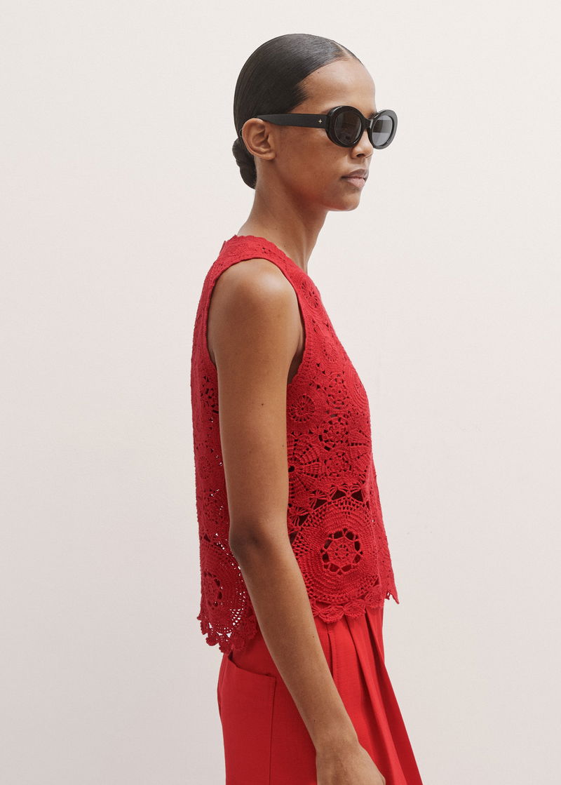 Asymmetric Cotton Crochet Vest Lipstick Red