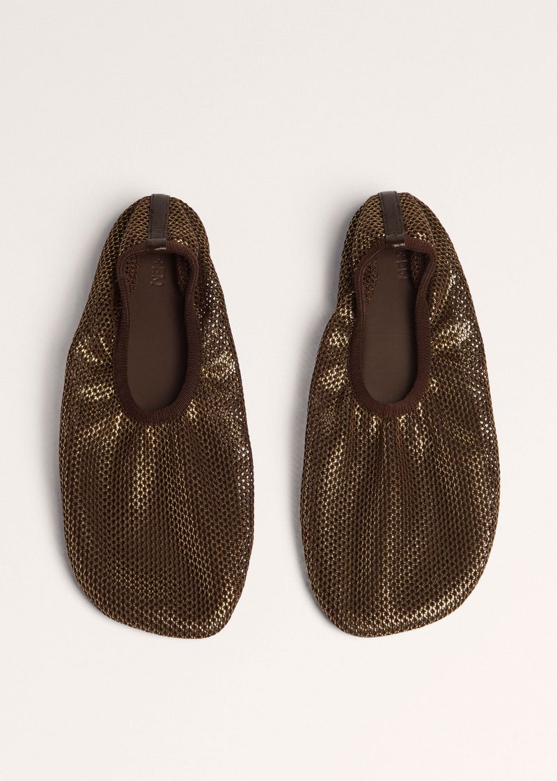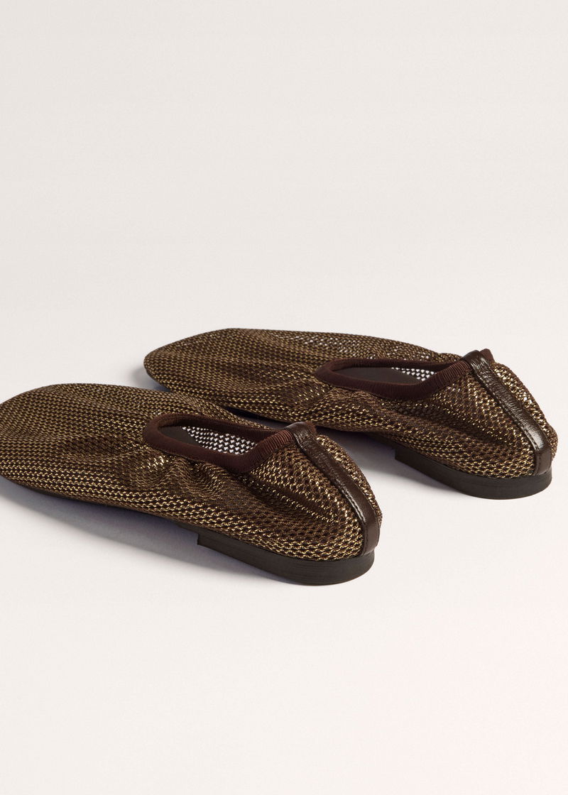 Asymmetric Mesh Slipper Chocolate/Gold
