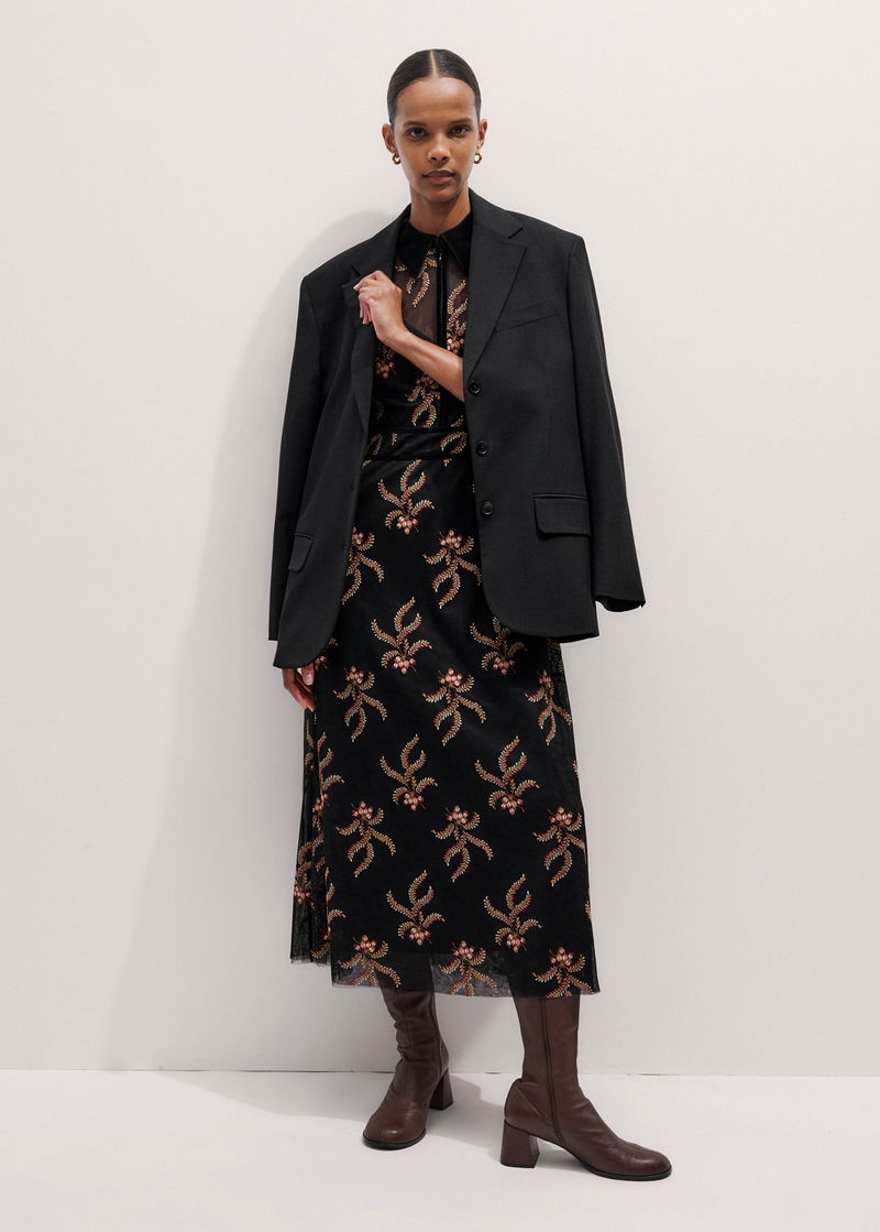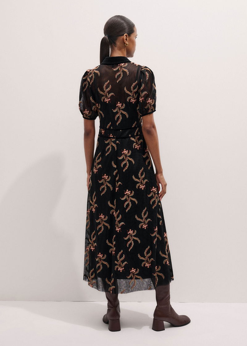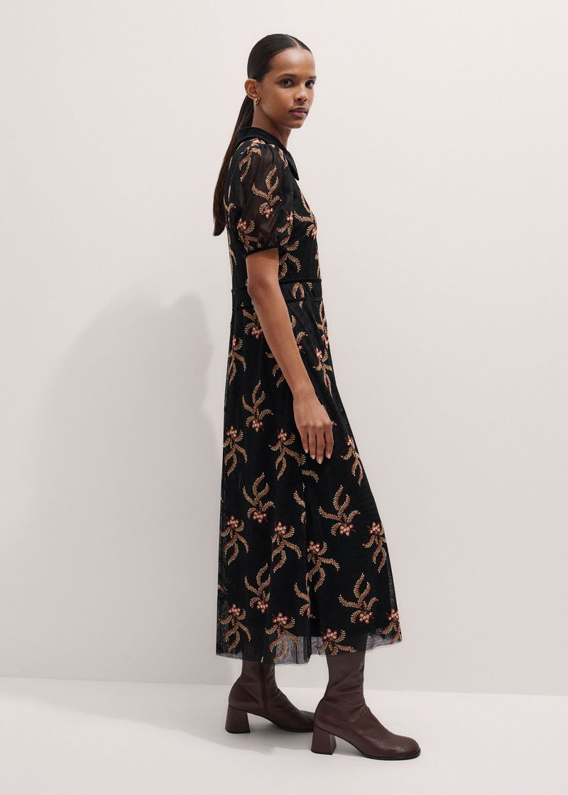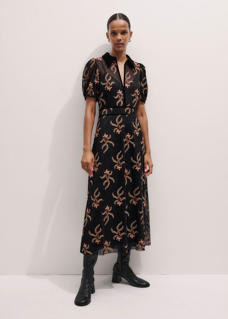 Autumn Floral Embroidery Maxi Dress + Slip Black/Multi