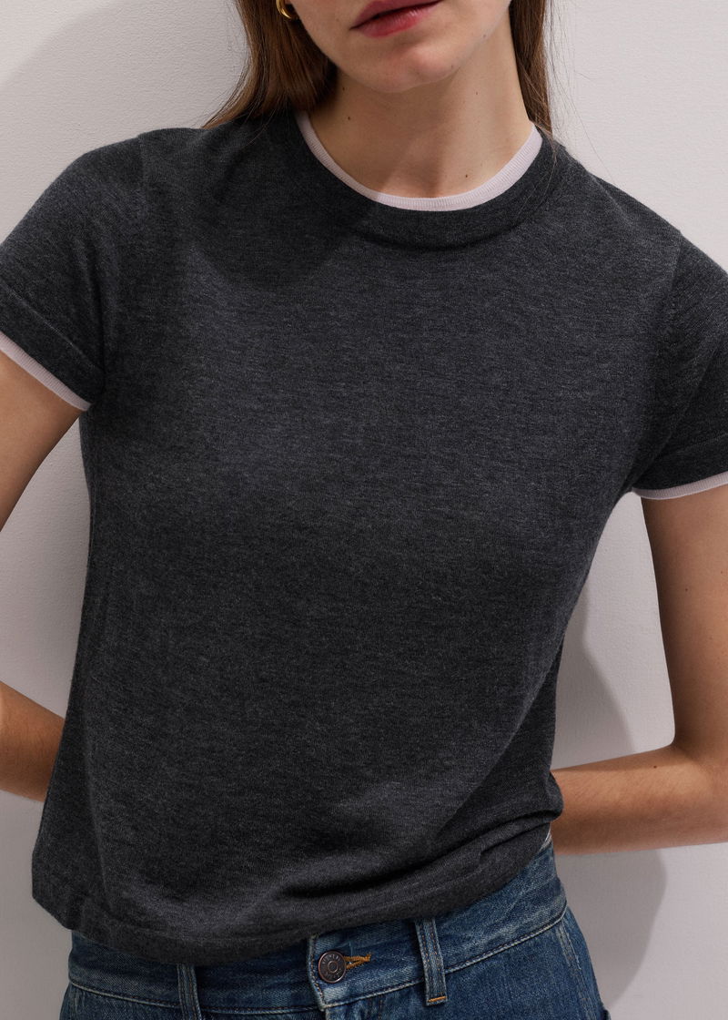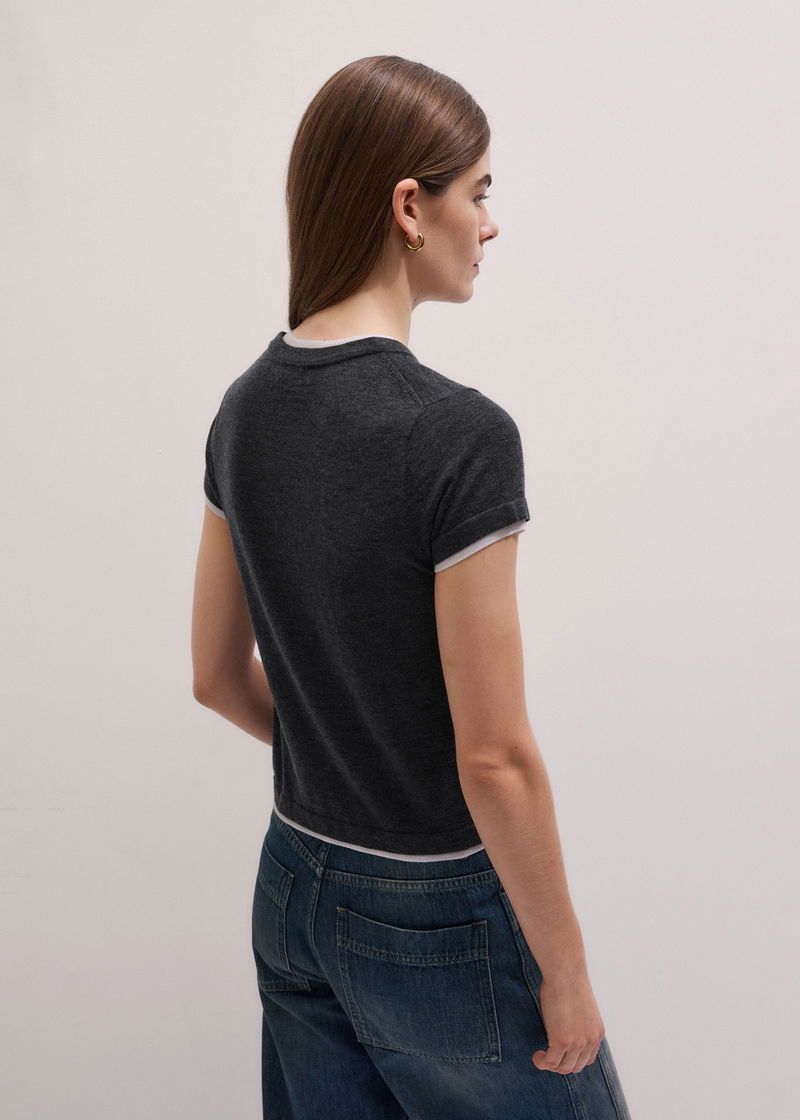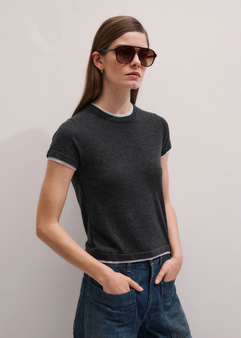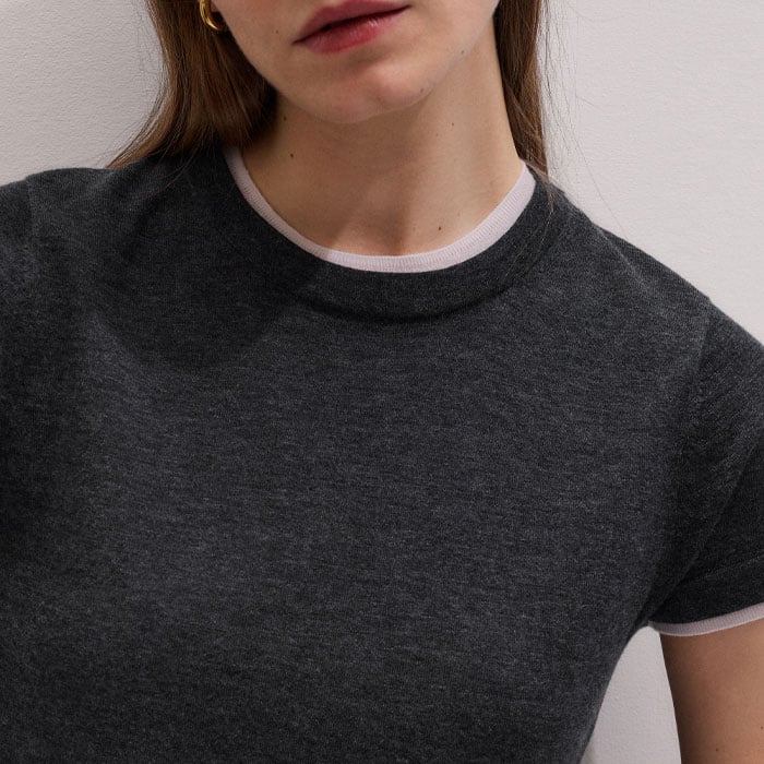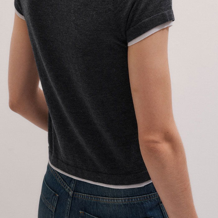 Barely There Contrast Trim Knit Baby Tee Charcoal/Soft White