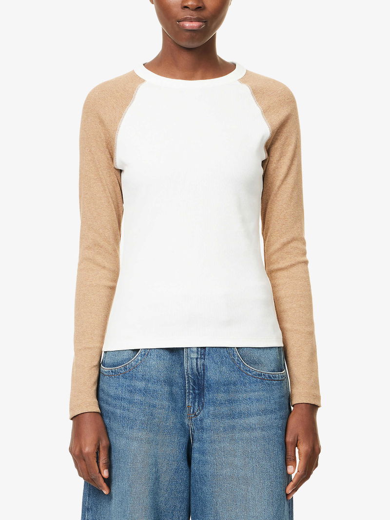 Baseball Raglan-Sleeve Stretch-Cotton Top