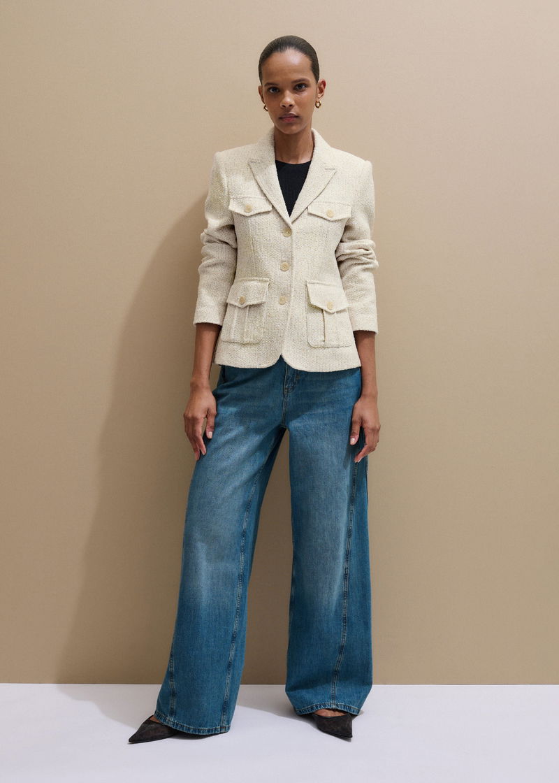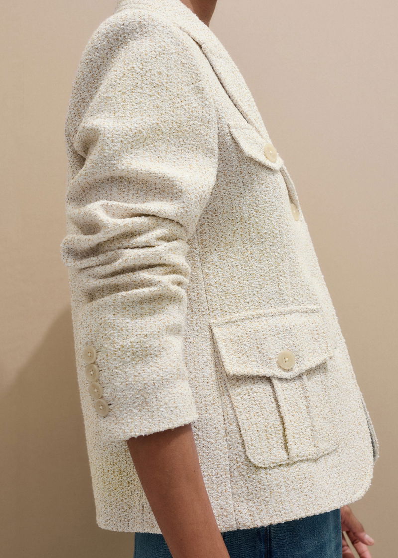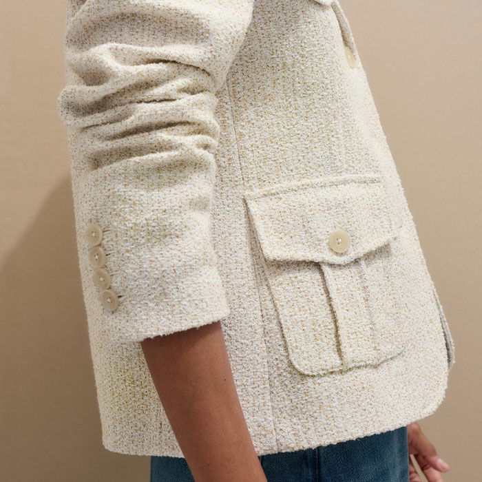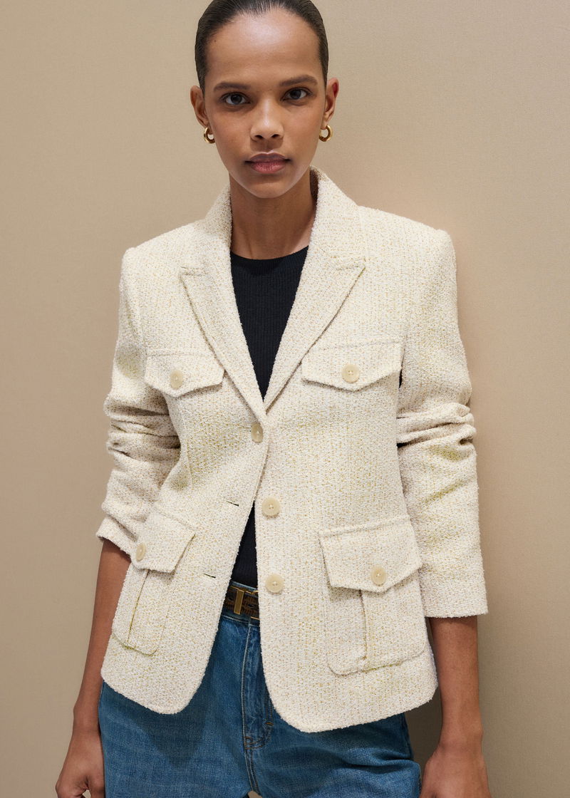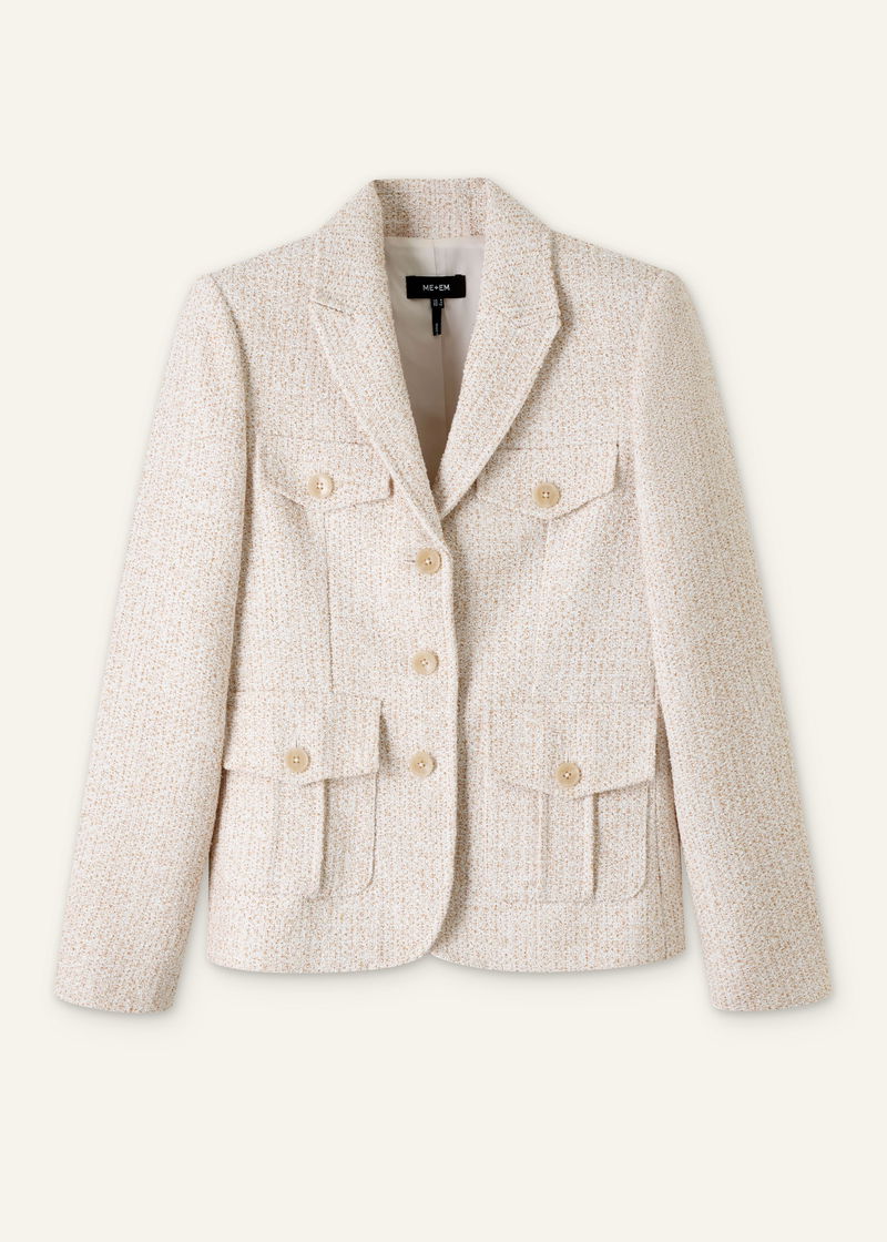 ME+EM's Ivory Bouclé Contour Jacket is designed with contoured seams which create a flattering, structured shape.