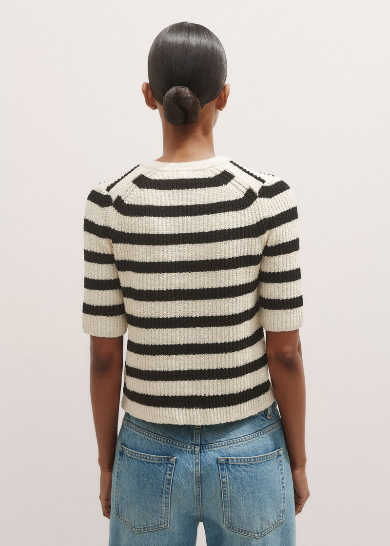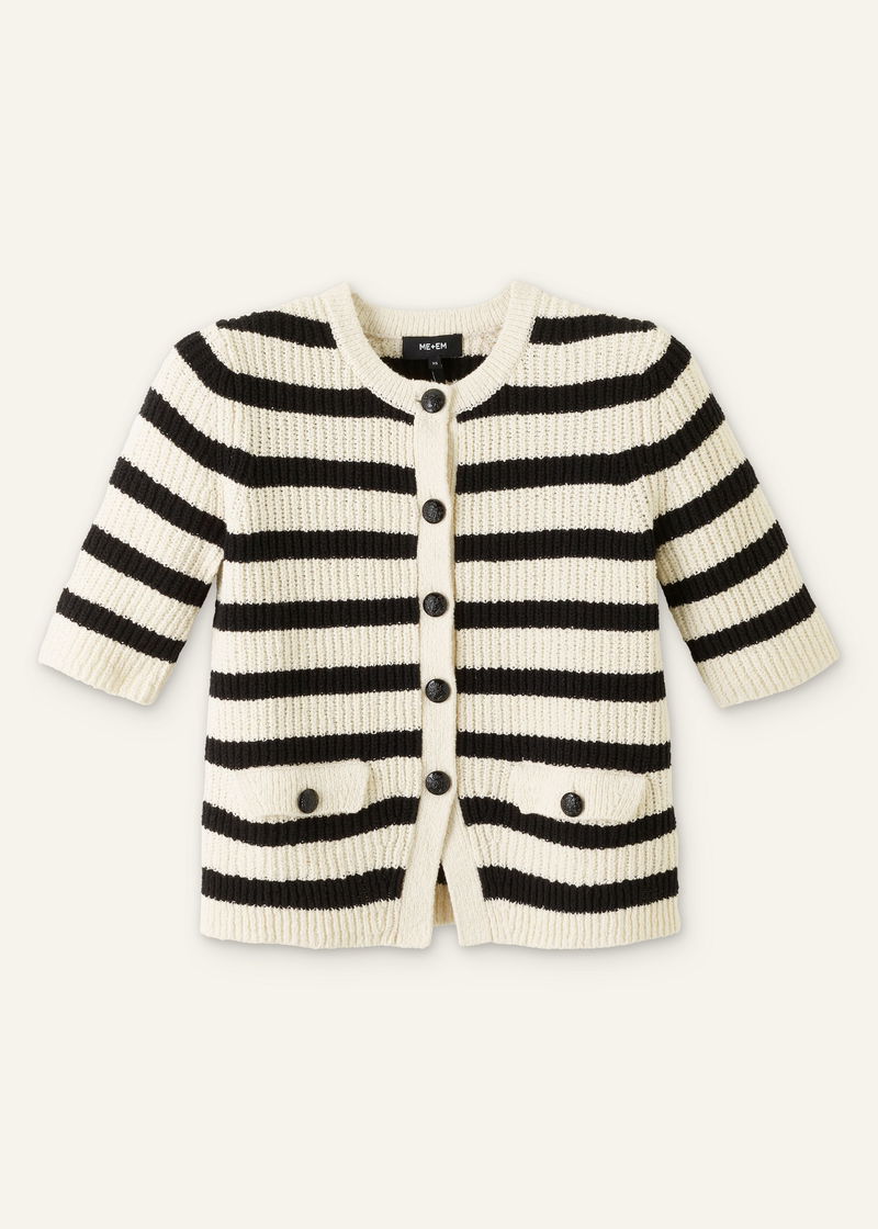 Bouclé Stripe Short Sleeve Cardigan Cream/Black