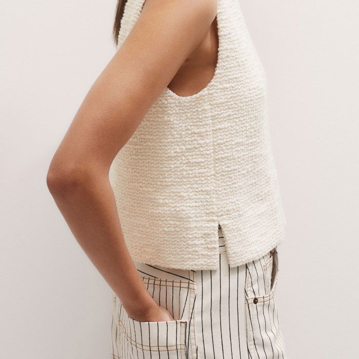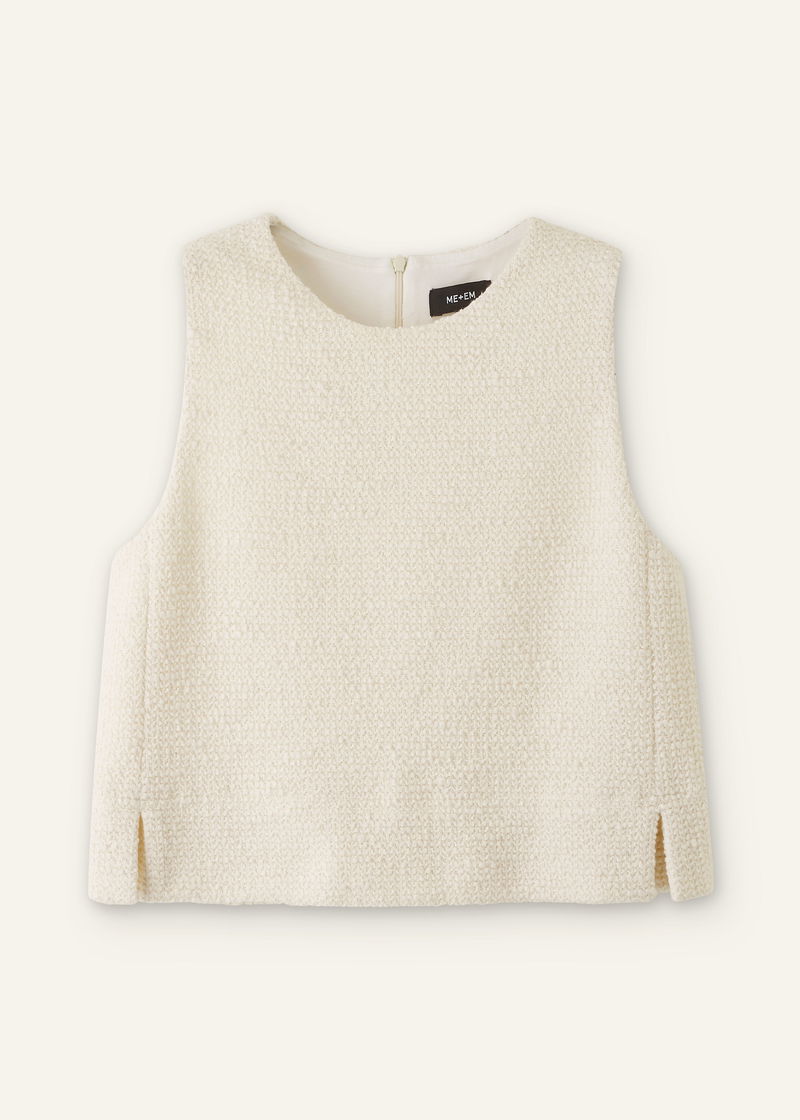 Bouclè Textured Crop Top Cream