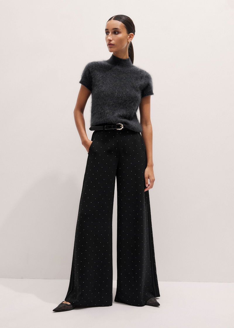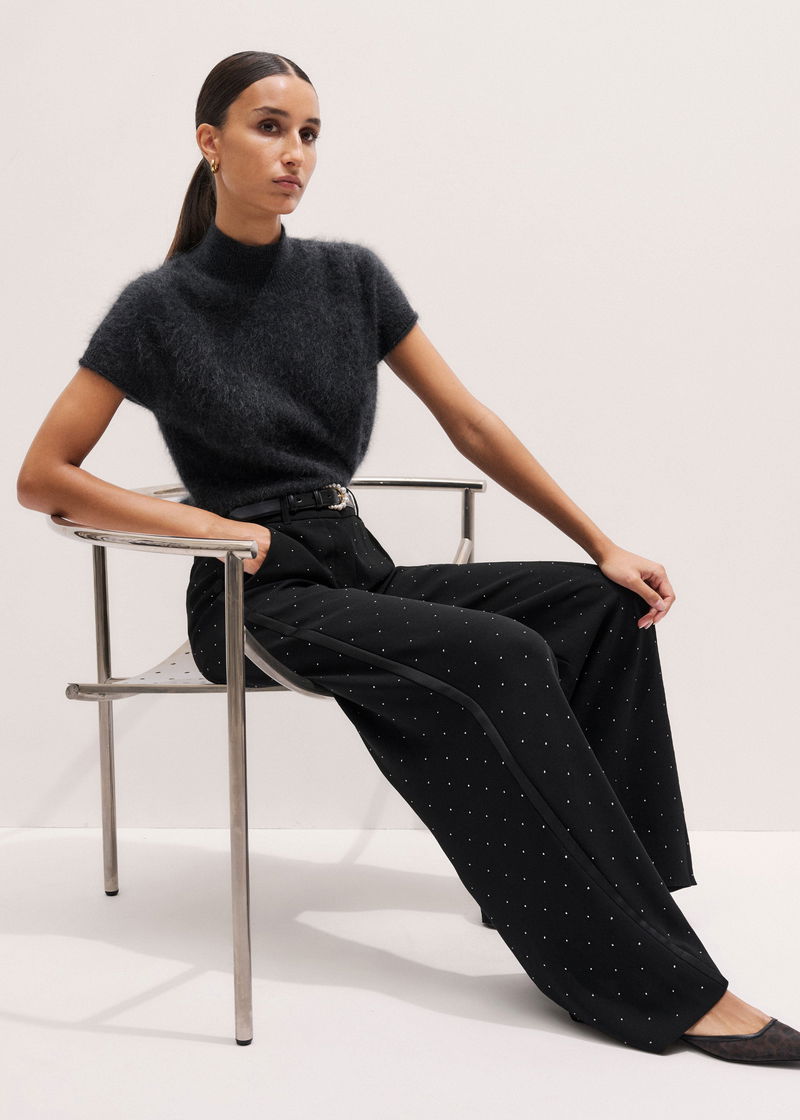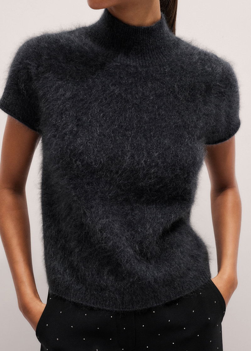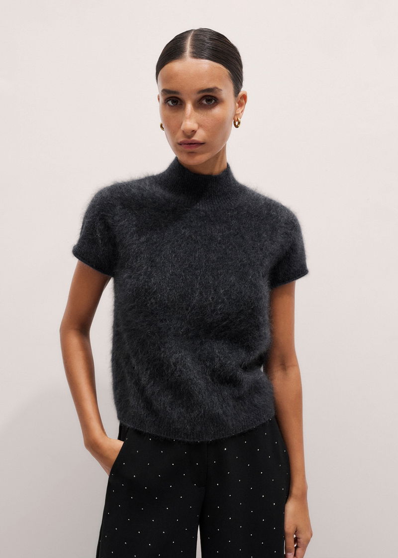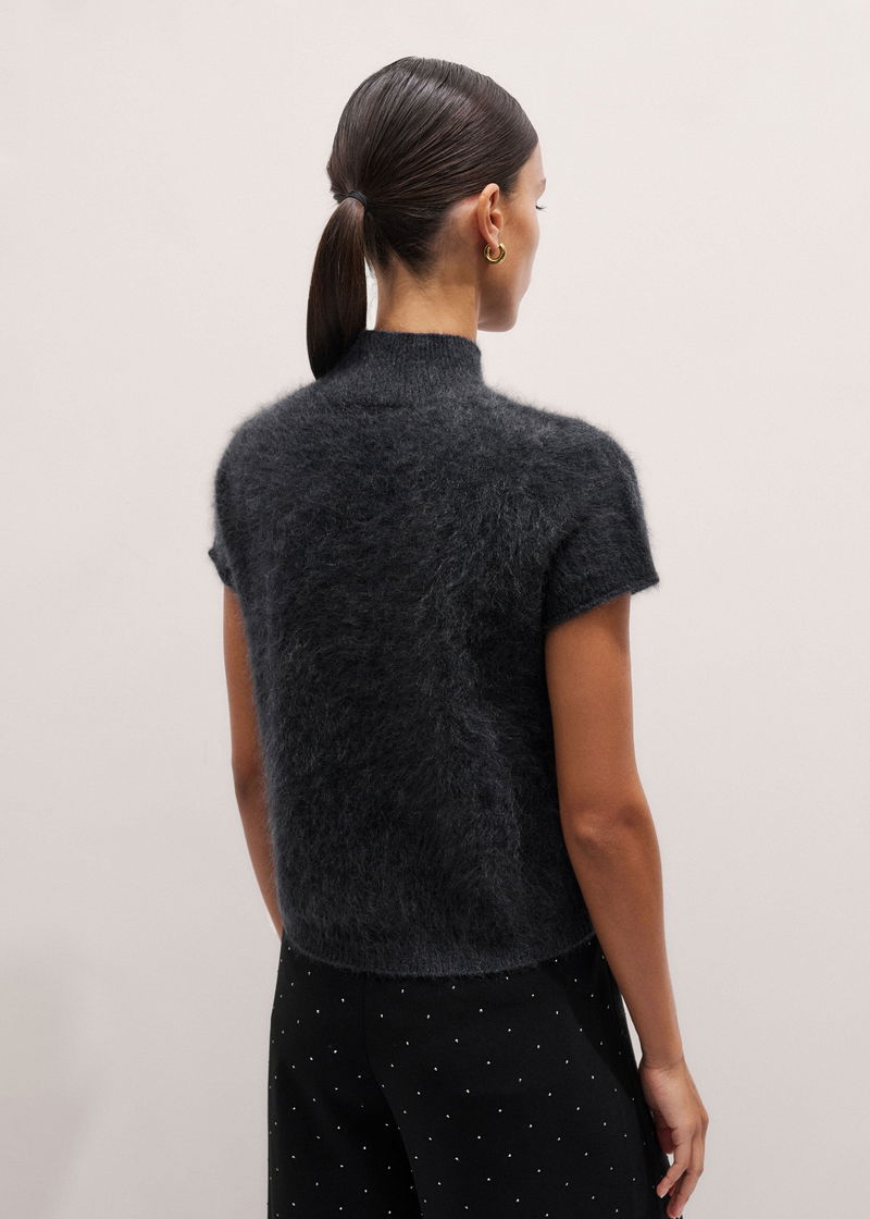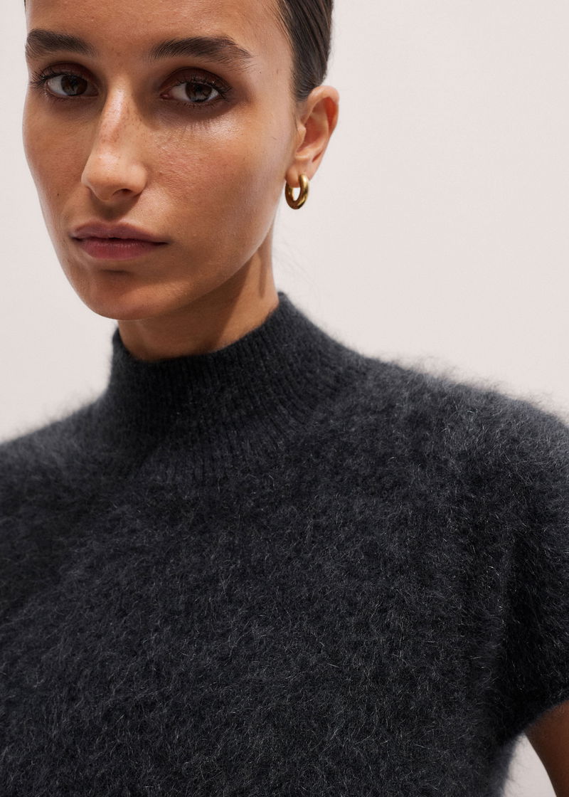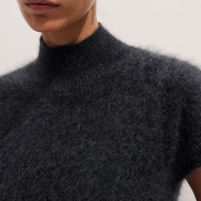Brushed Cashmere High Neck Knit Baby Tee Charcoal Melange
