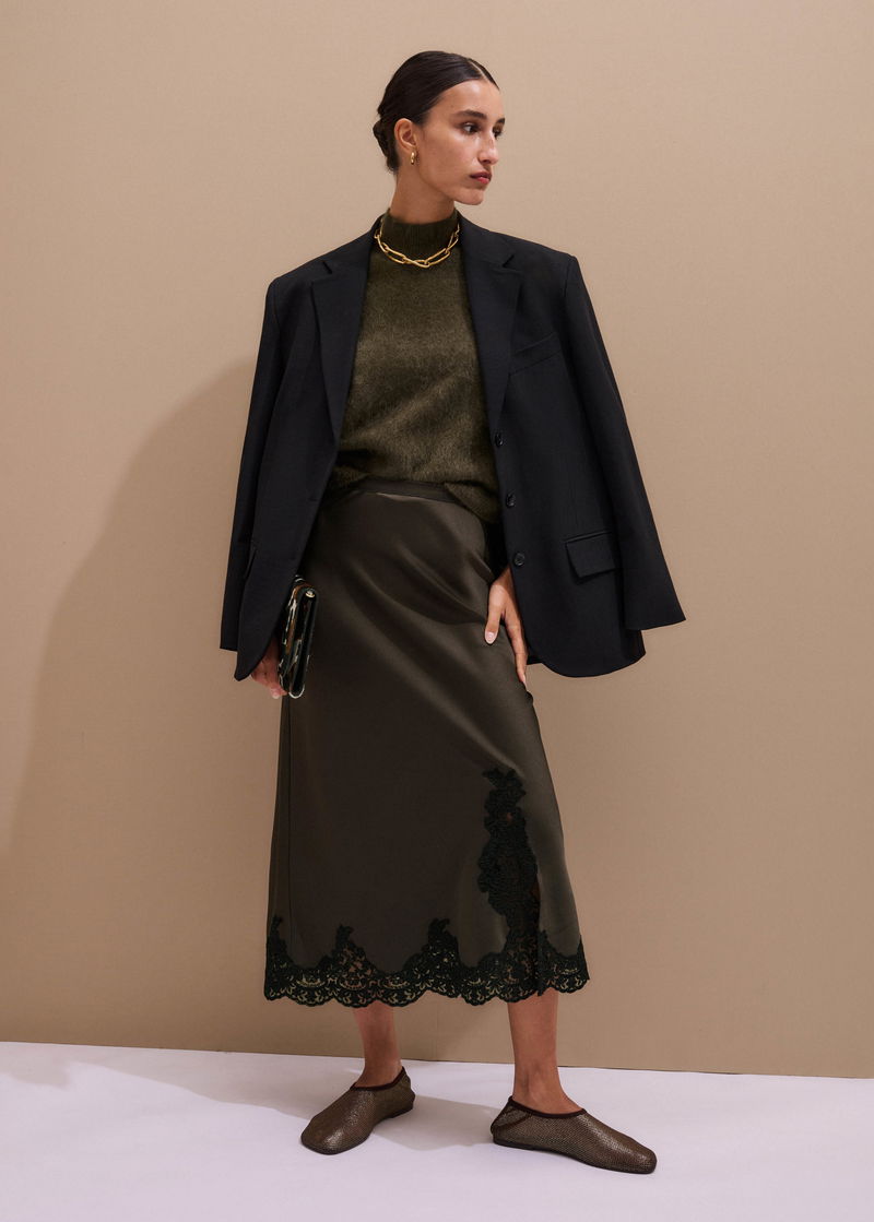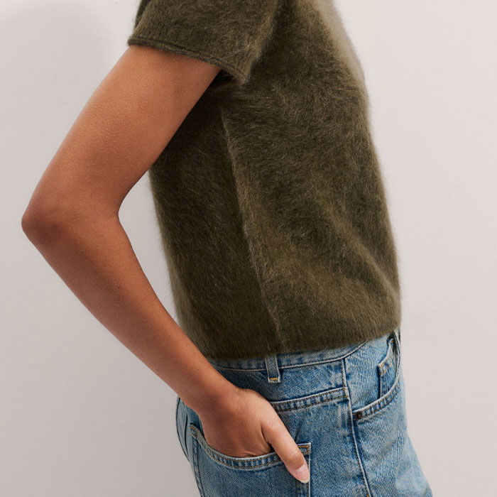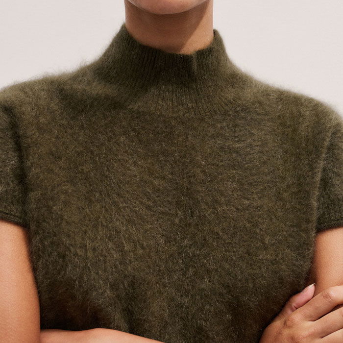 Brushed Cashmere High Neck Knit Baby Tee Intense Olive