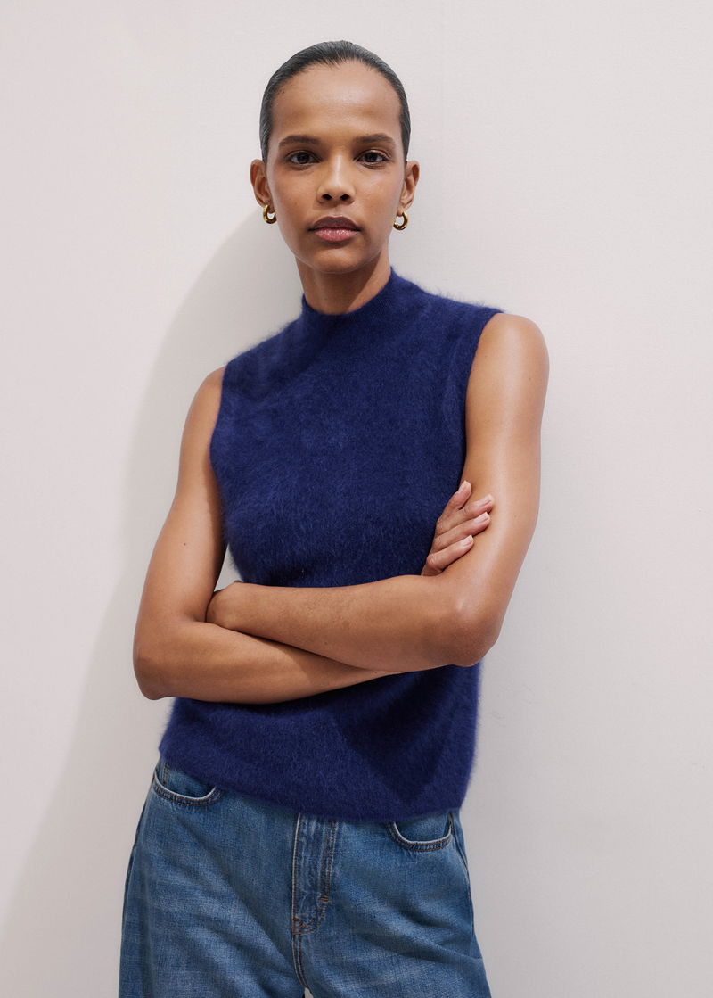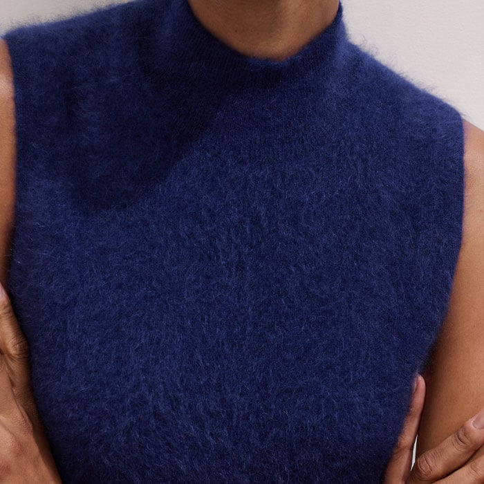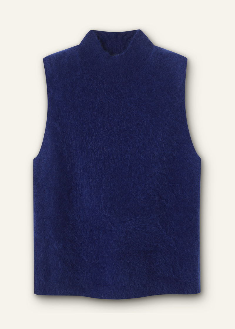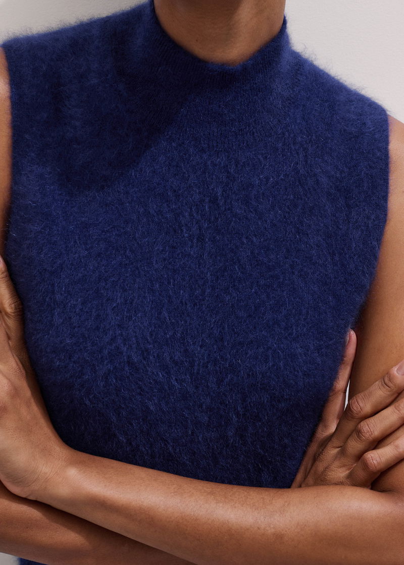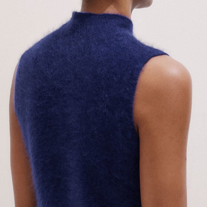 Brushed Cashmere High Neck Slim Knit Vest Bright Evening Blue