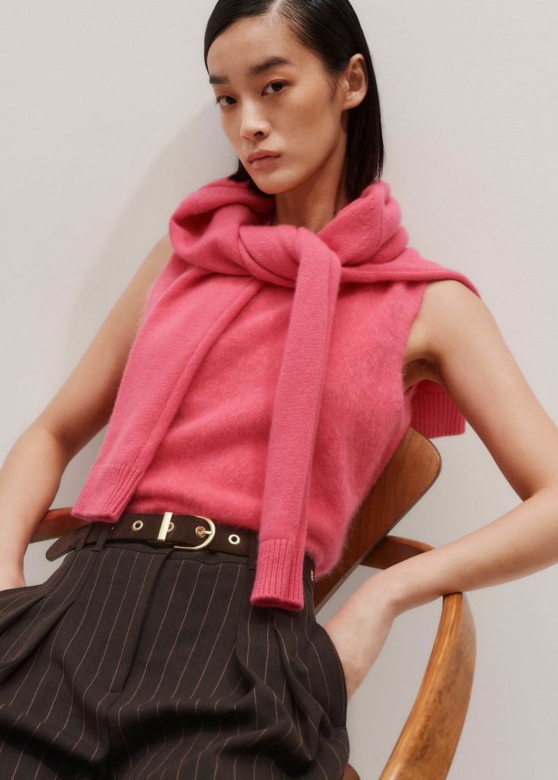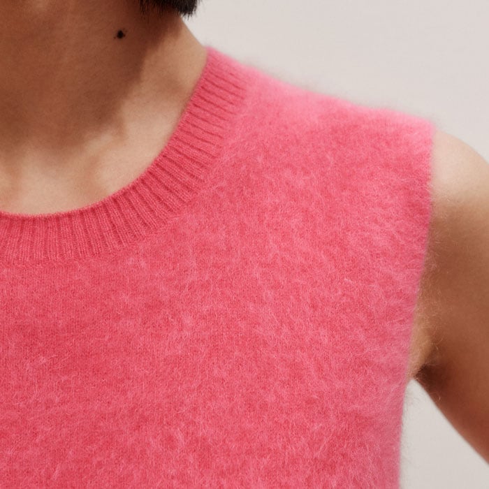 Brushed Cashmere Straight Knit Vest Rhubarb Pink