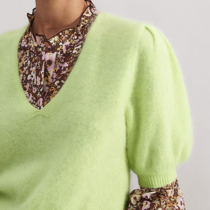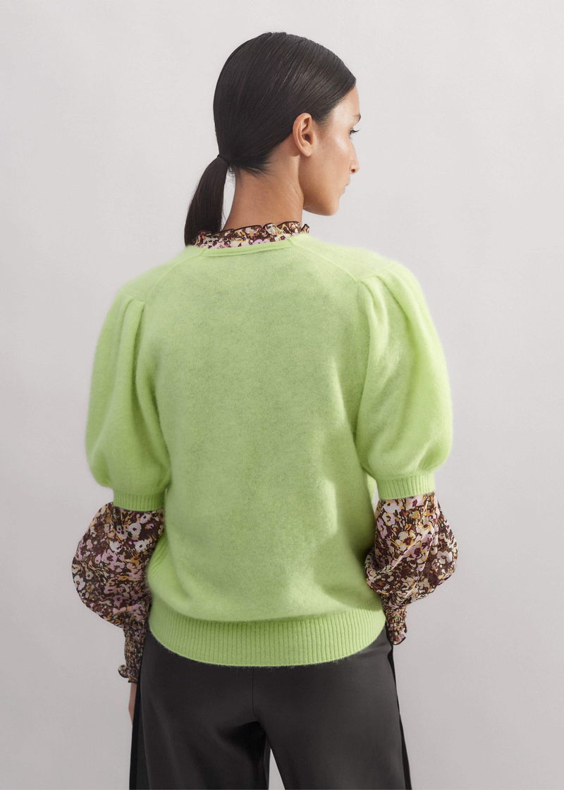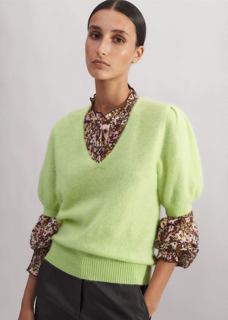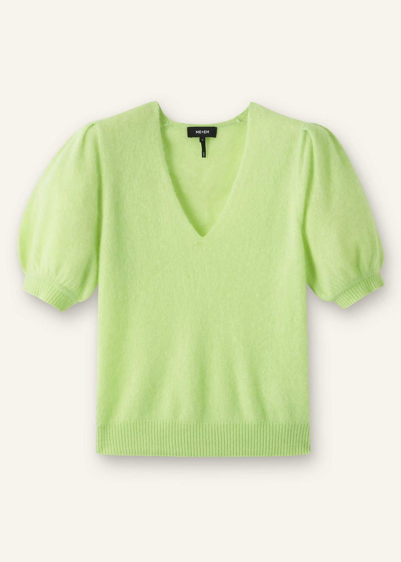 Brushed Cashmere V-Neck Knit Tee Ice Lime