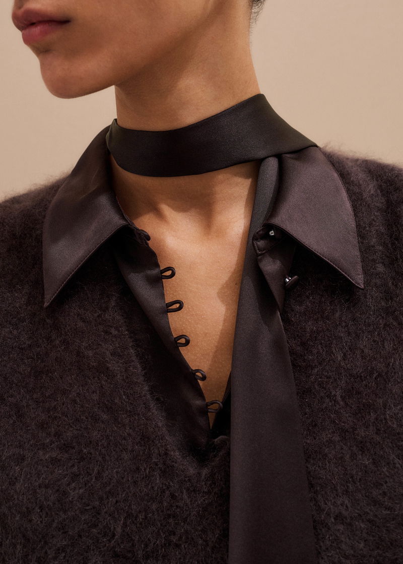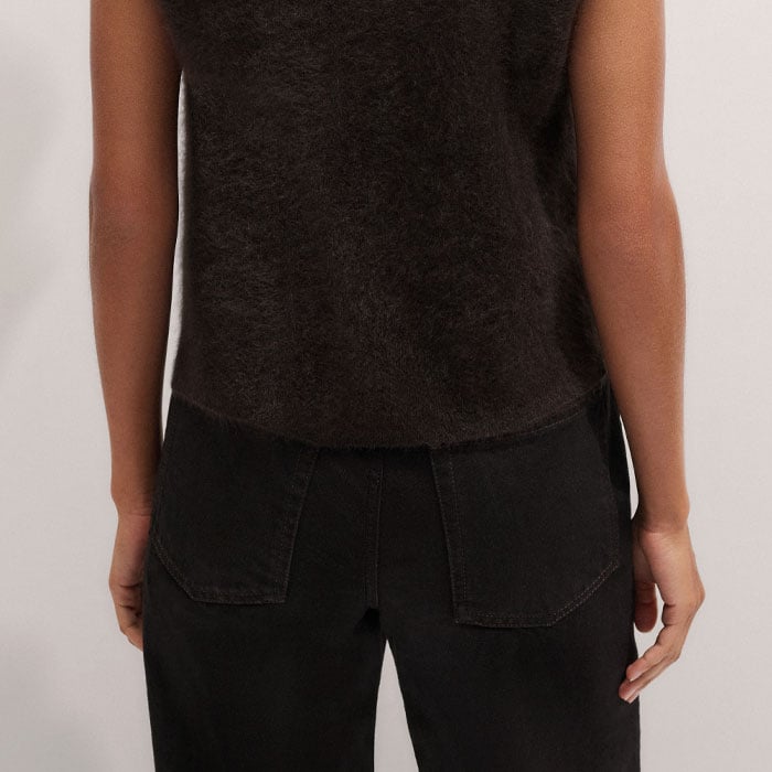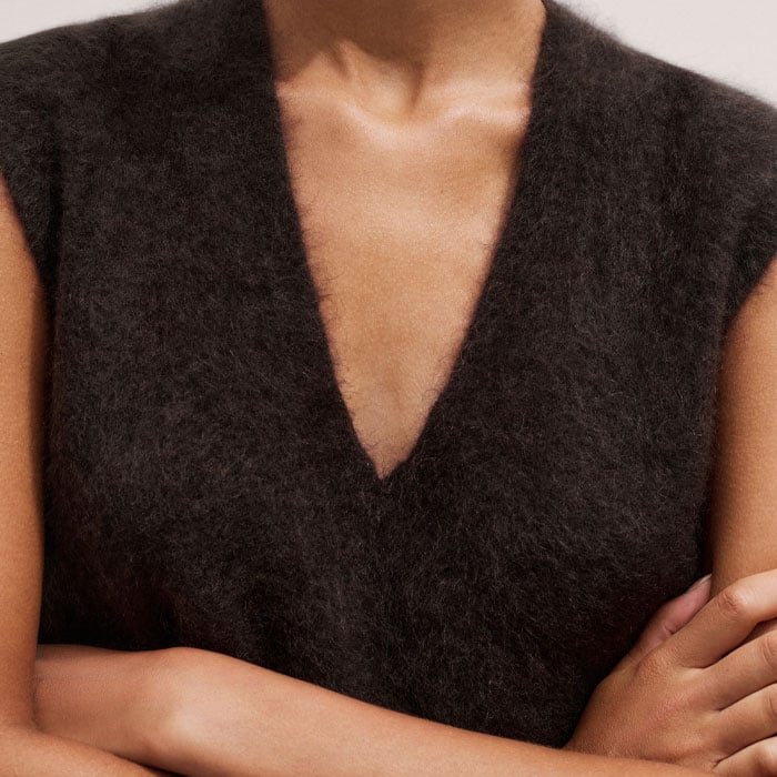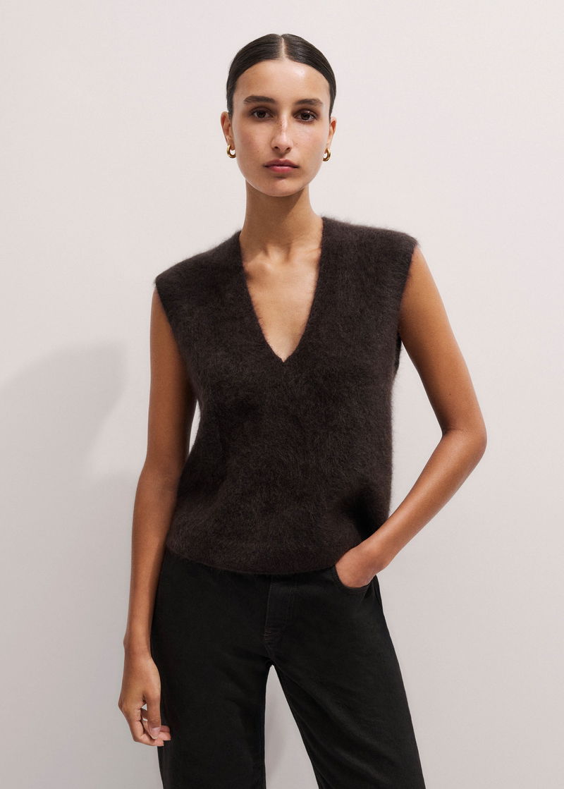 Brushed Cashmere V-Neck Straight Knit Vest Ganache Brown
