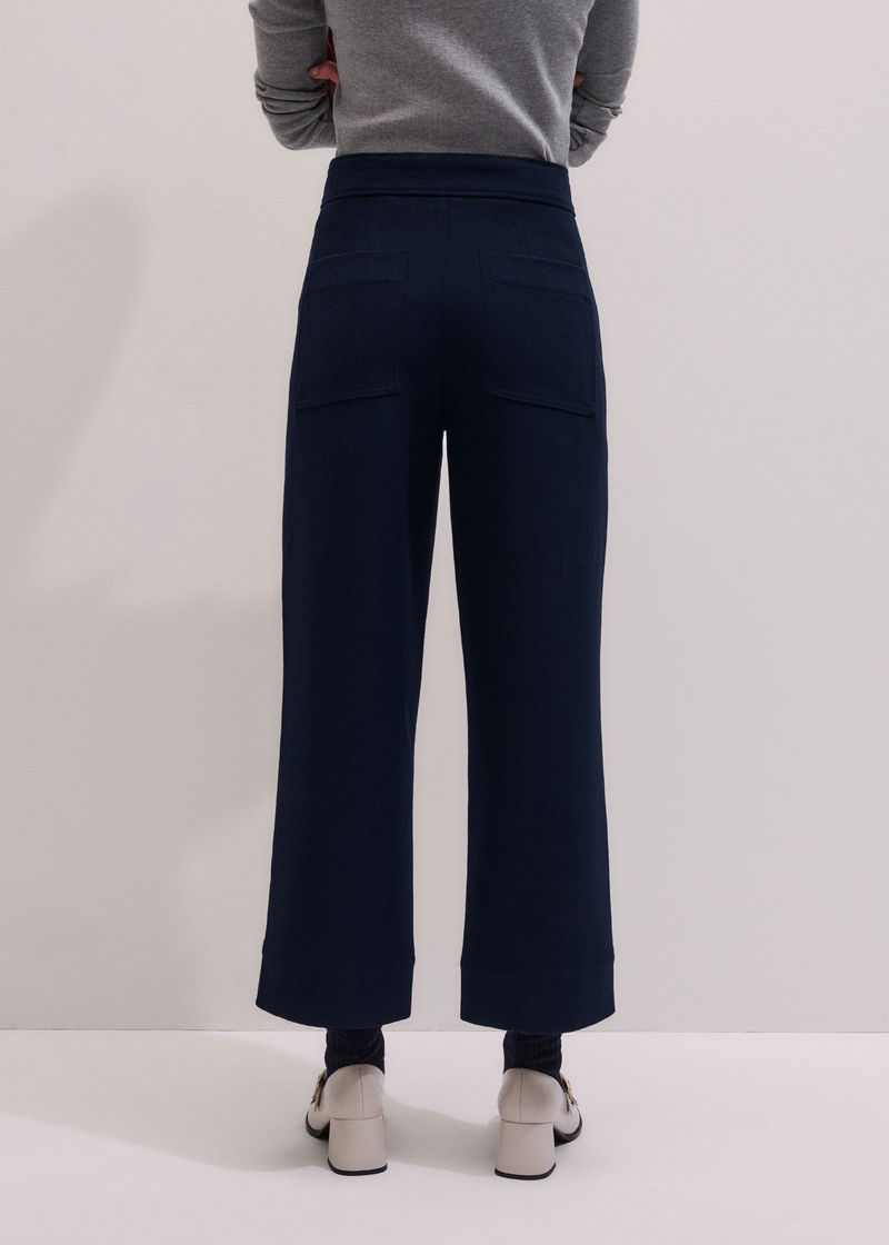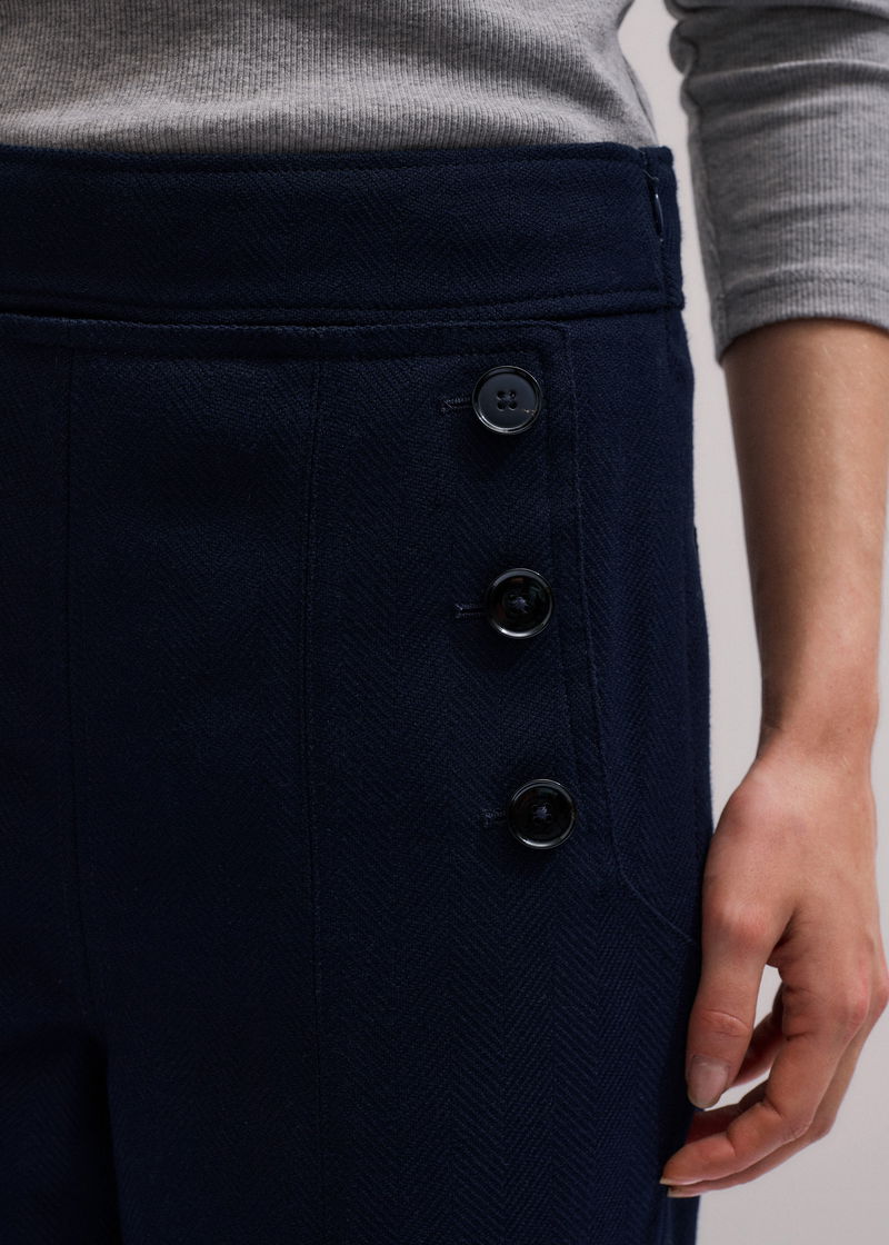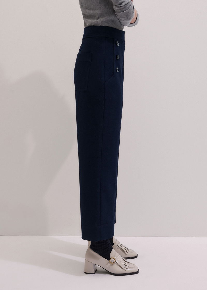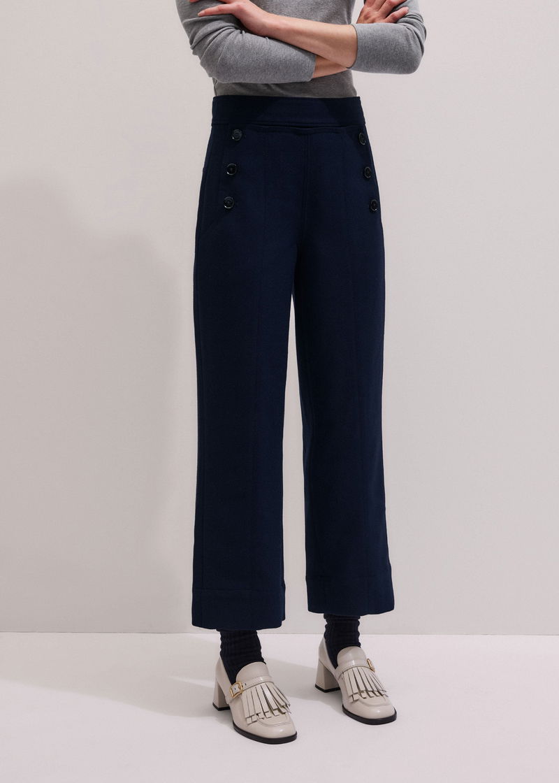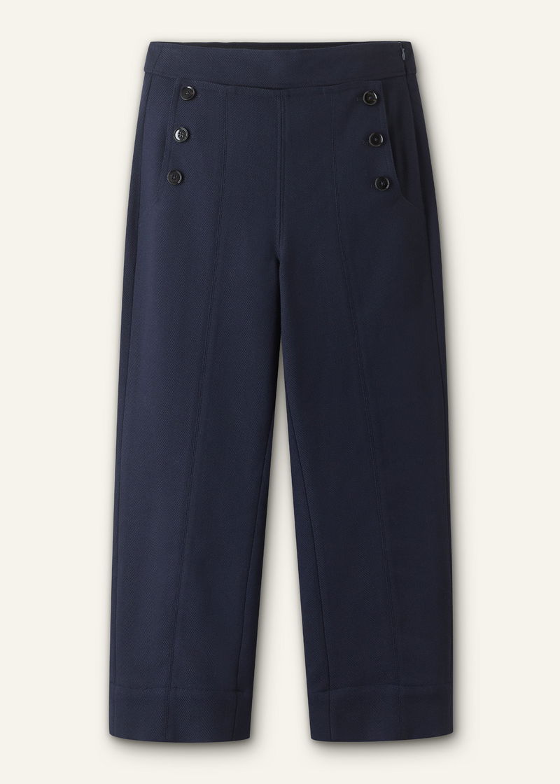 Button Front Straight Crop Trouser Navy