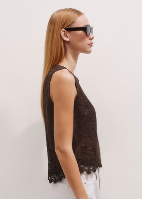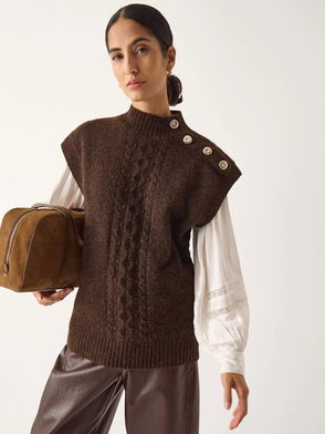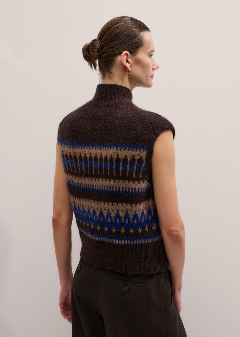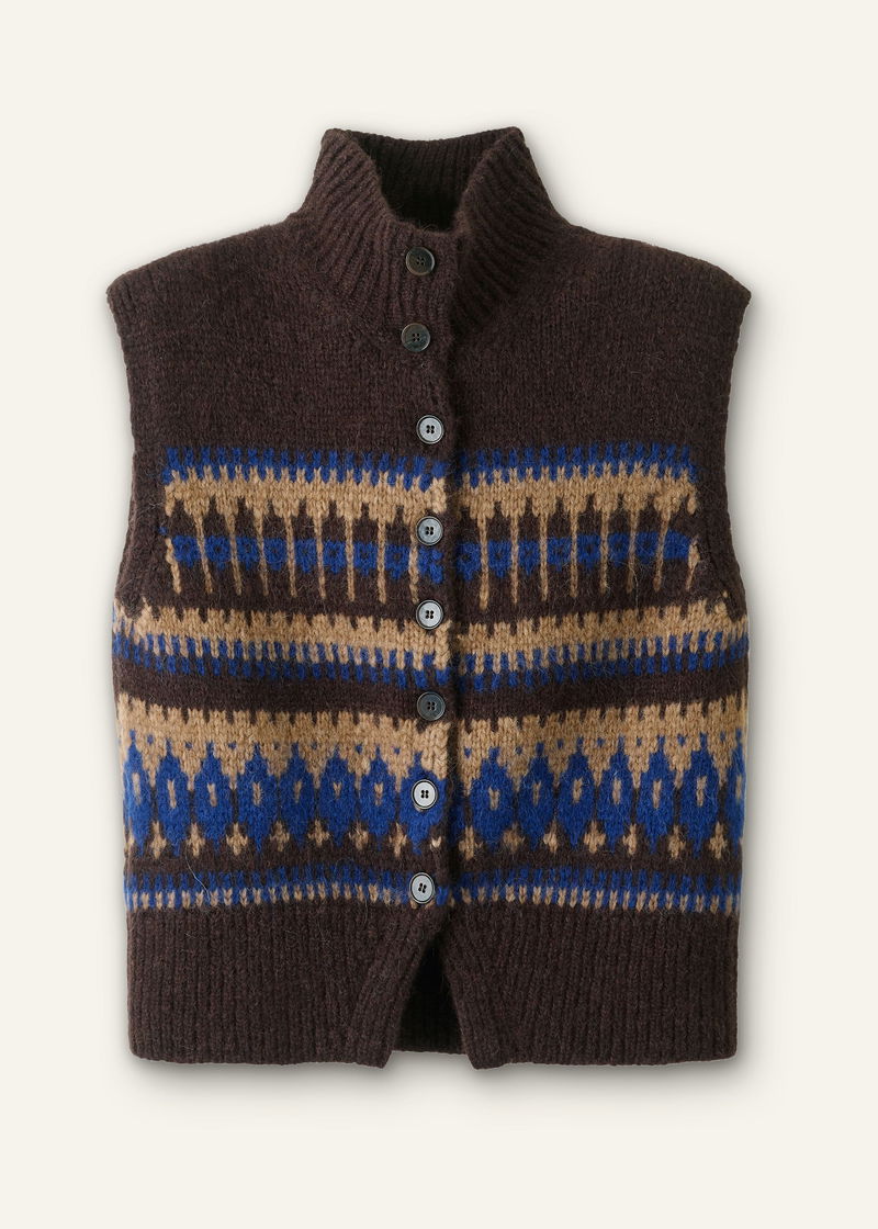 Button-Through Relaxed Jacquard Vest Chocolate Multi