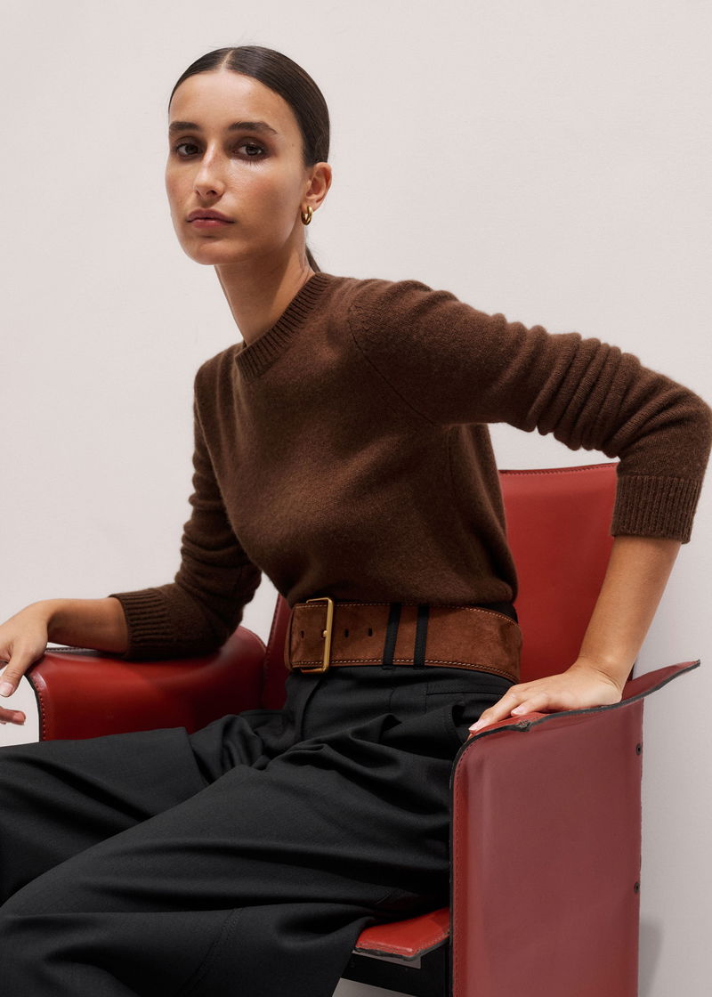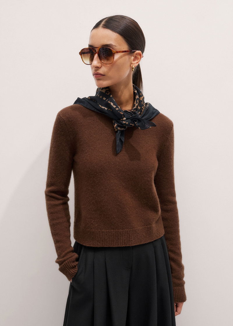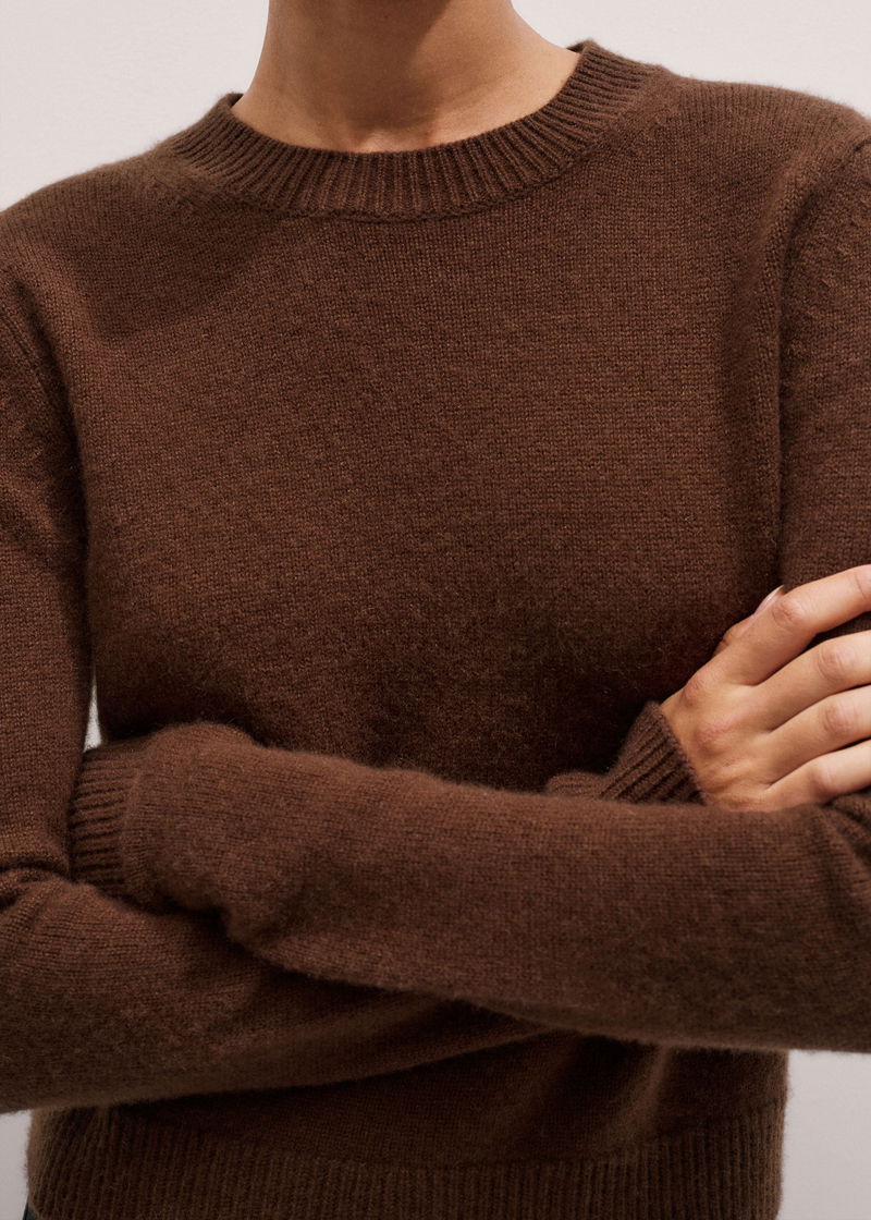 Cashmere Crew Neck Crop Jumper Chestnut Brown