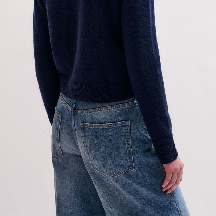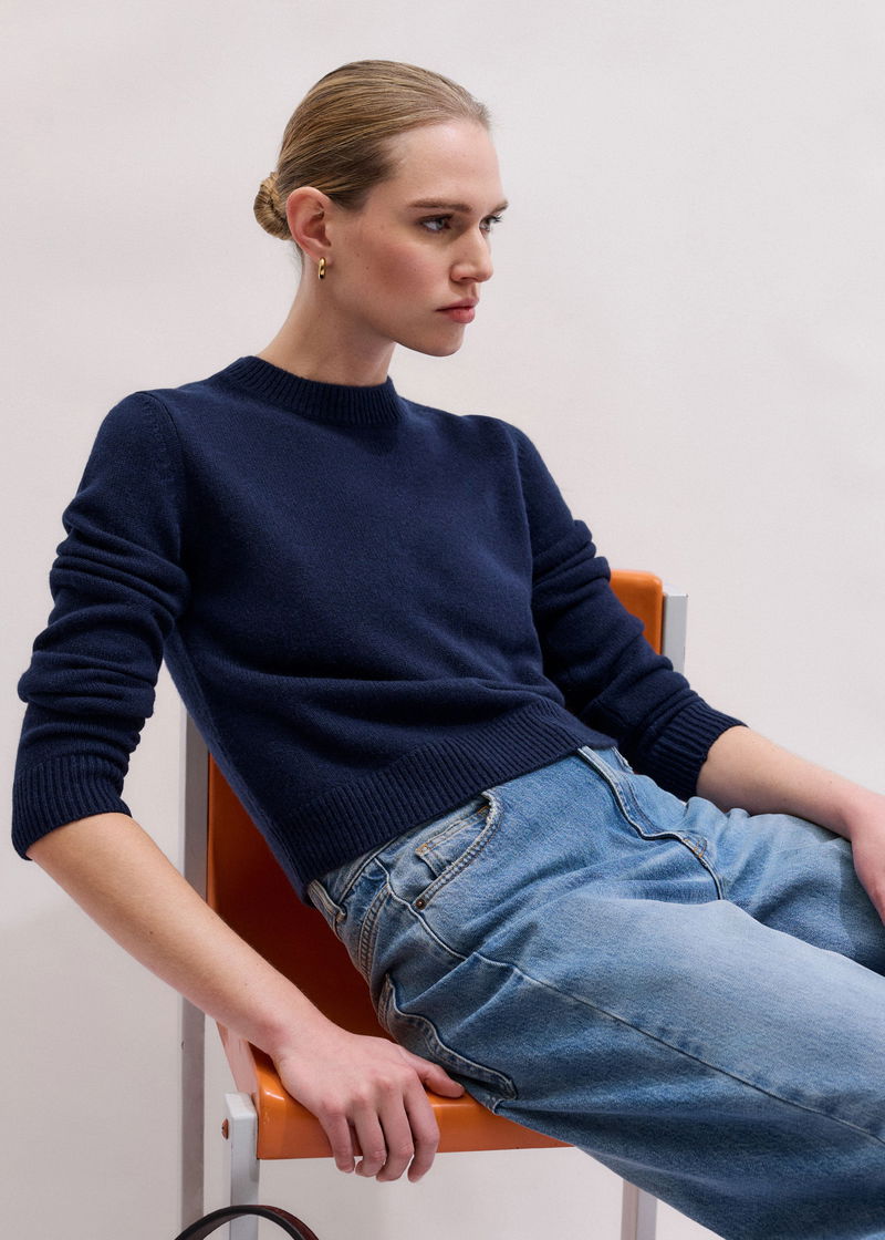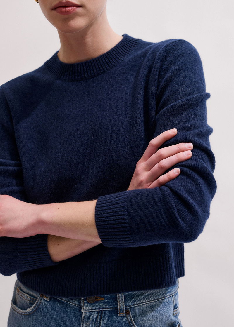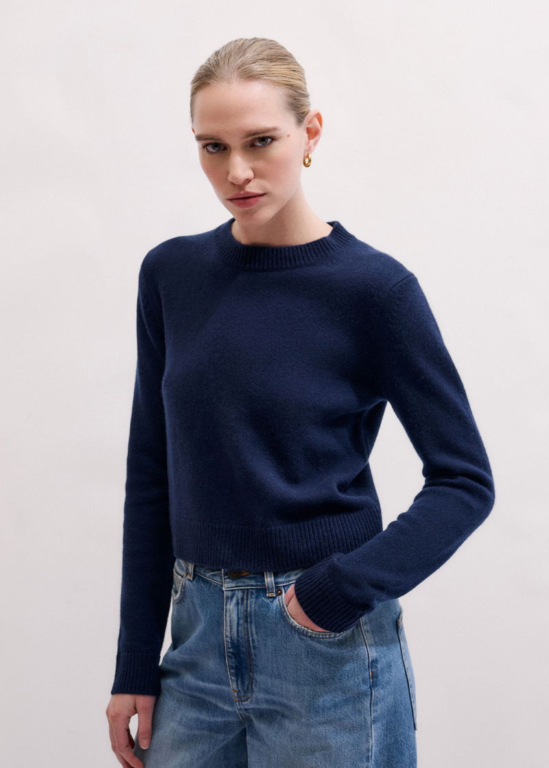 Cashmere Crew Neck Crop Jumper Navy