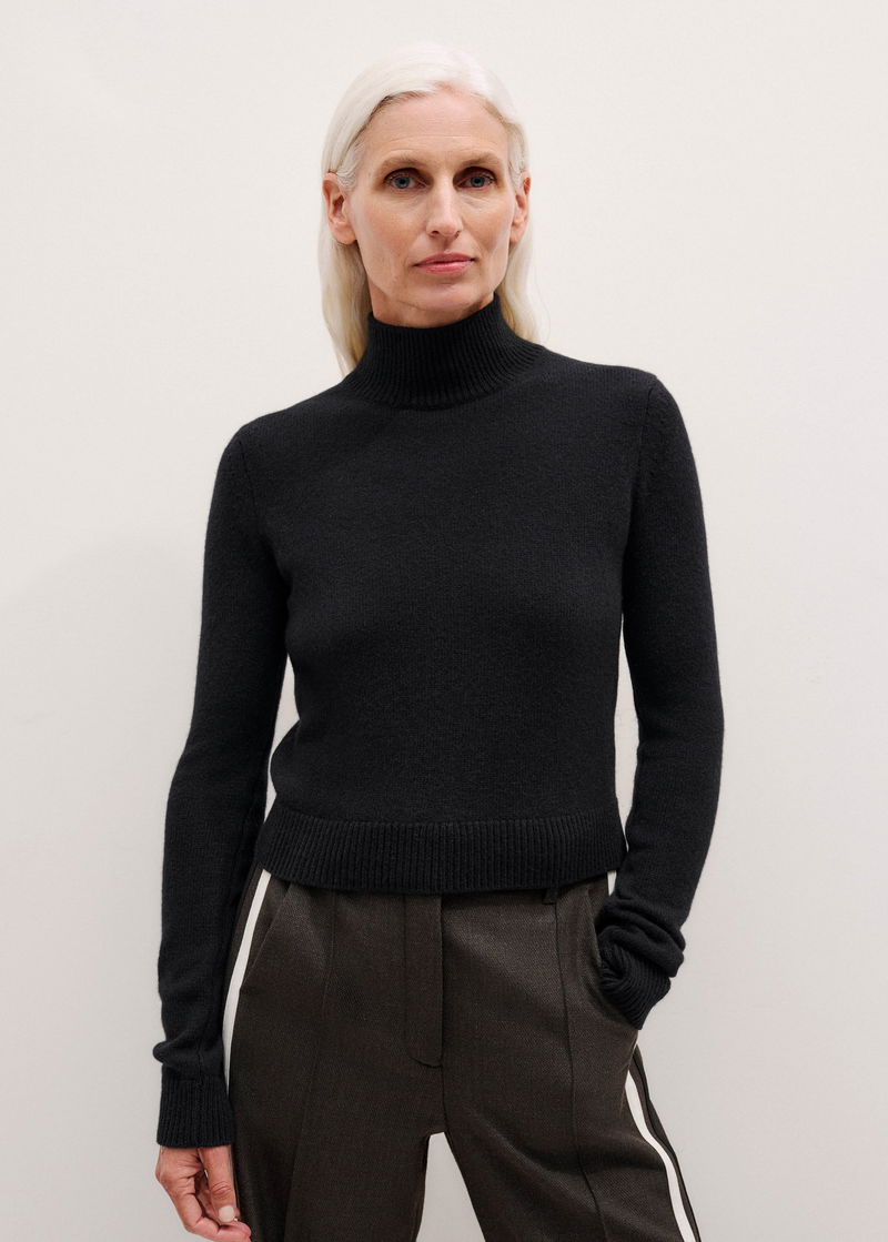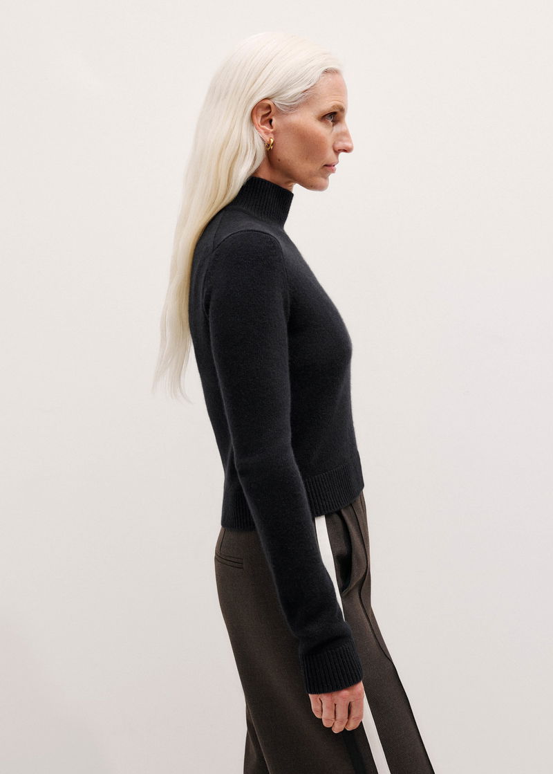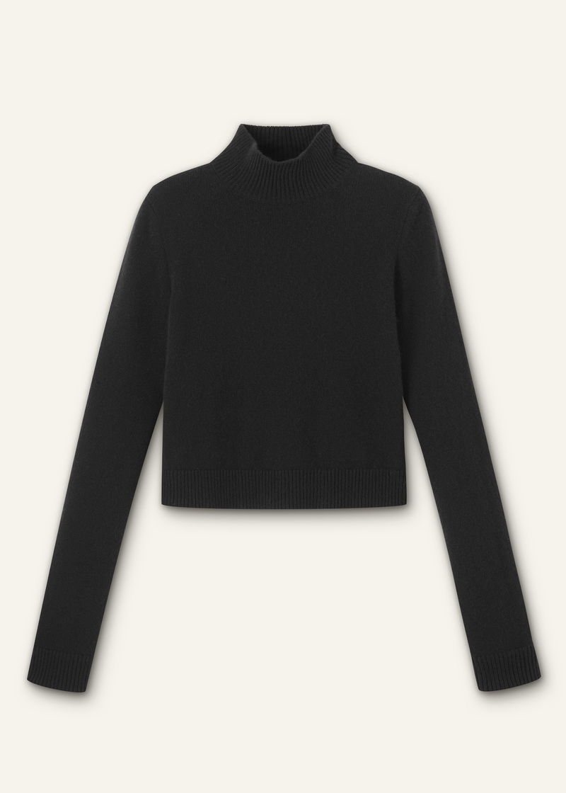 Cashmere High Neck Crop Jumper Black