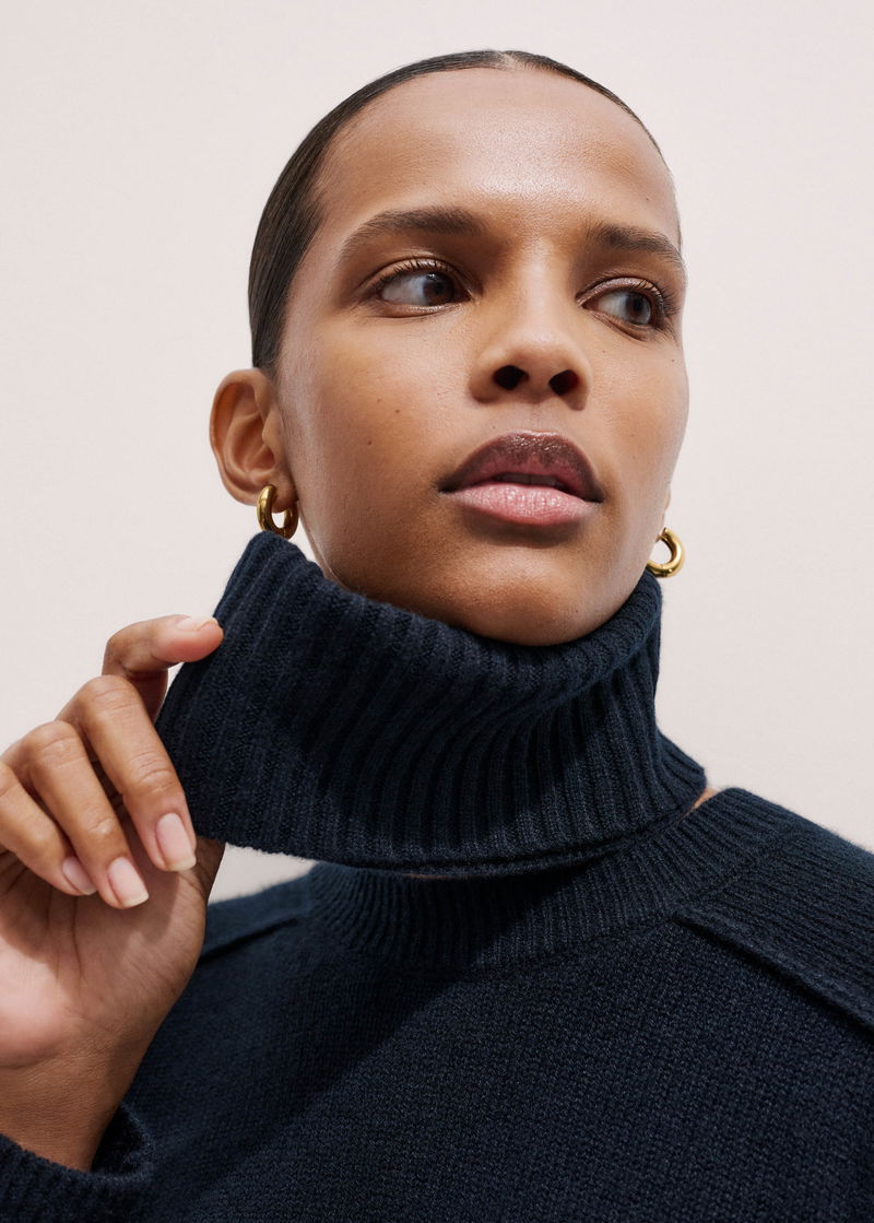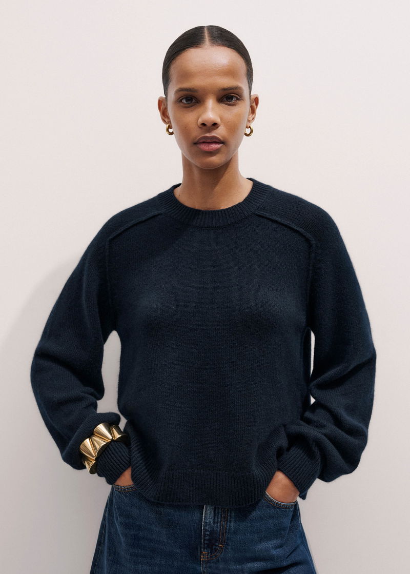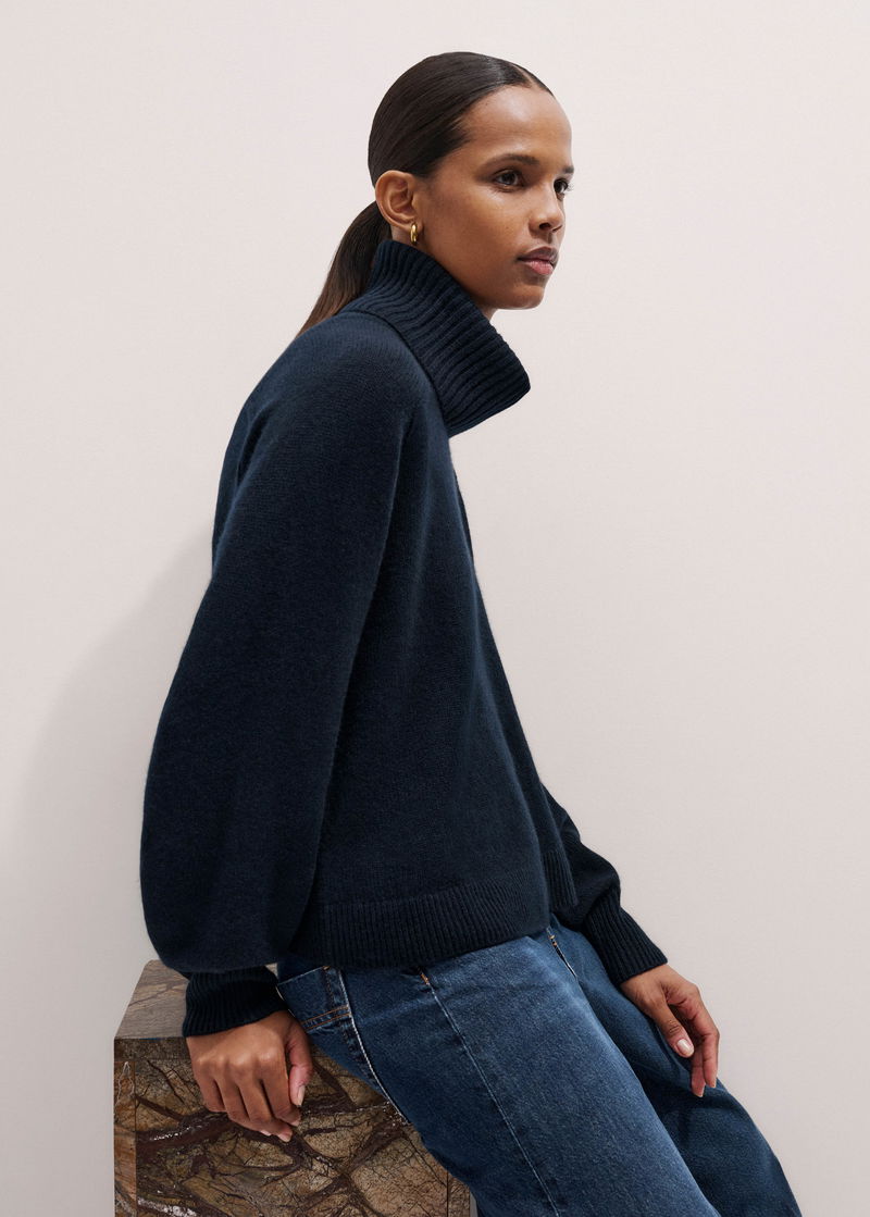 Cashmere Relaxed Balloon Sleeve Jumper + Snood Formal Navy