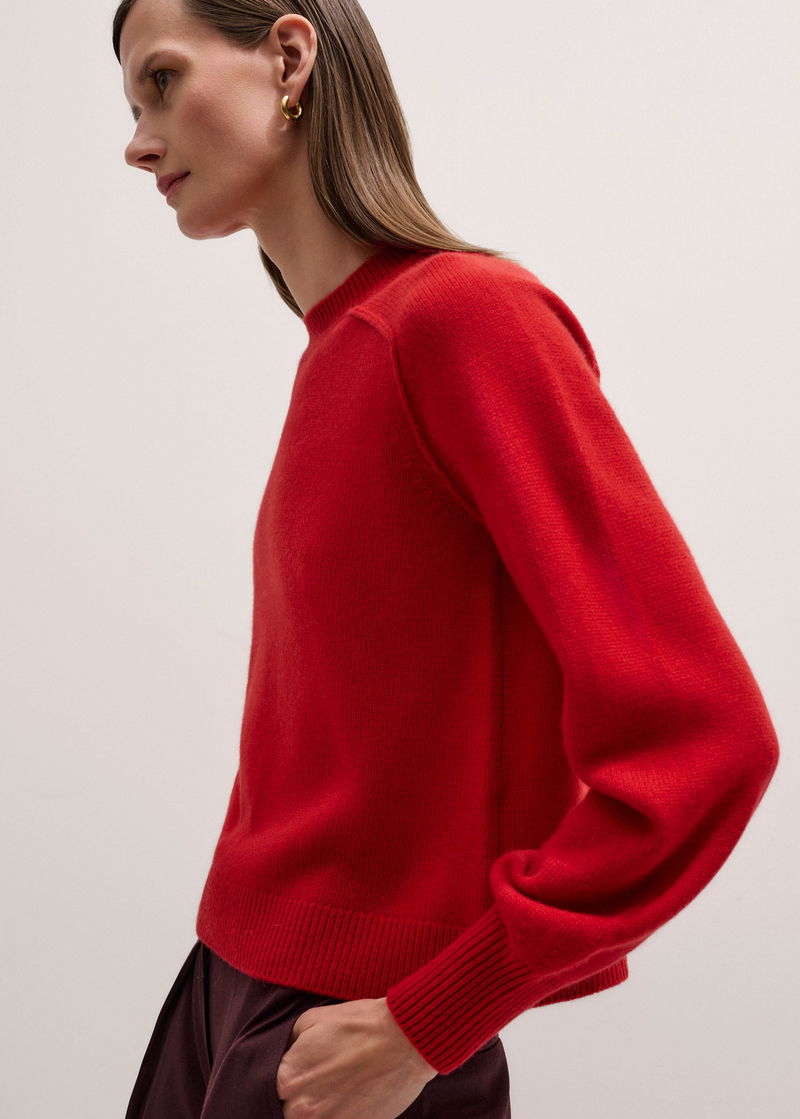 Cashmere Relaxed Balloon Sleeve Jumper + Snood True Scarlet Red