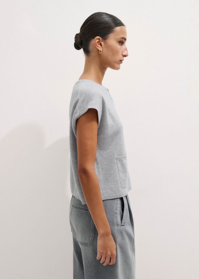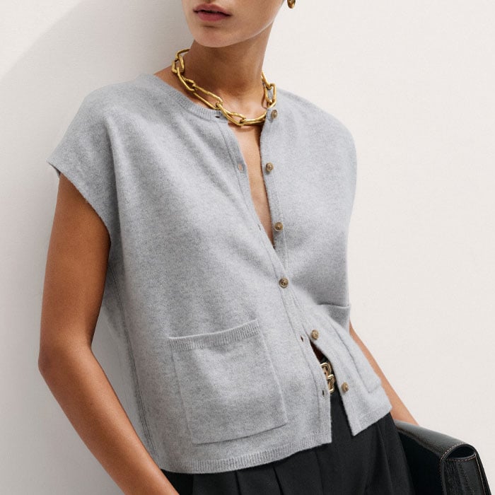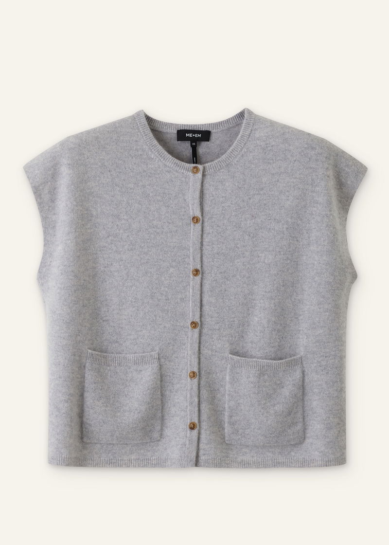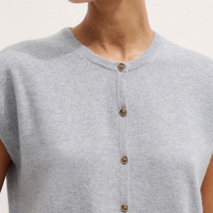Cashmere Relaxed Button-Through Vest Grey Melange
