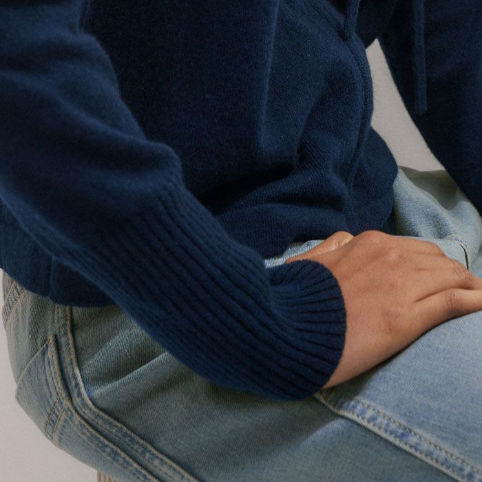 Cashmere Relaxed Fit Box Zip Hoody Navy