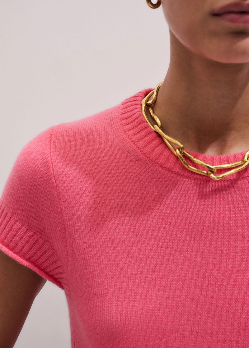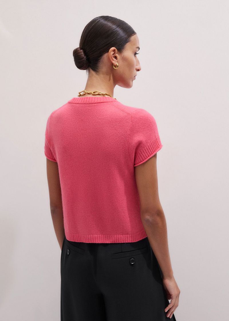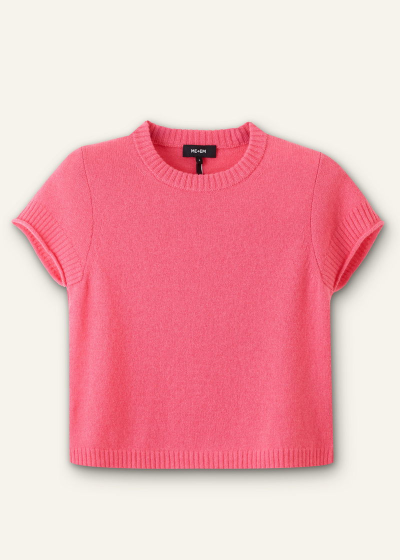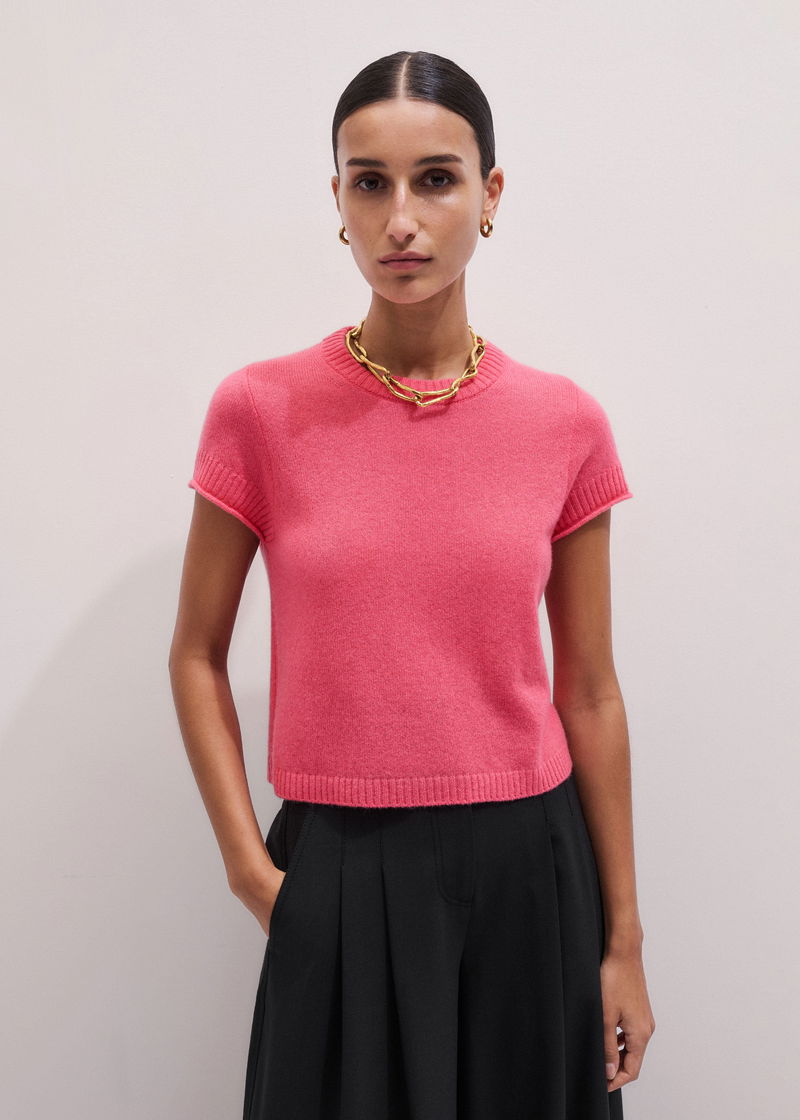 Cashmere Shrunken Knit Baby Tee Rhubarb Pink