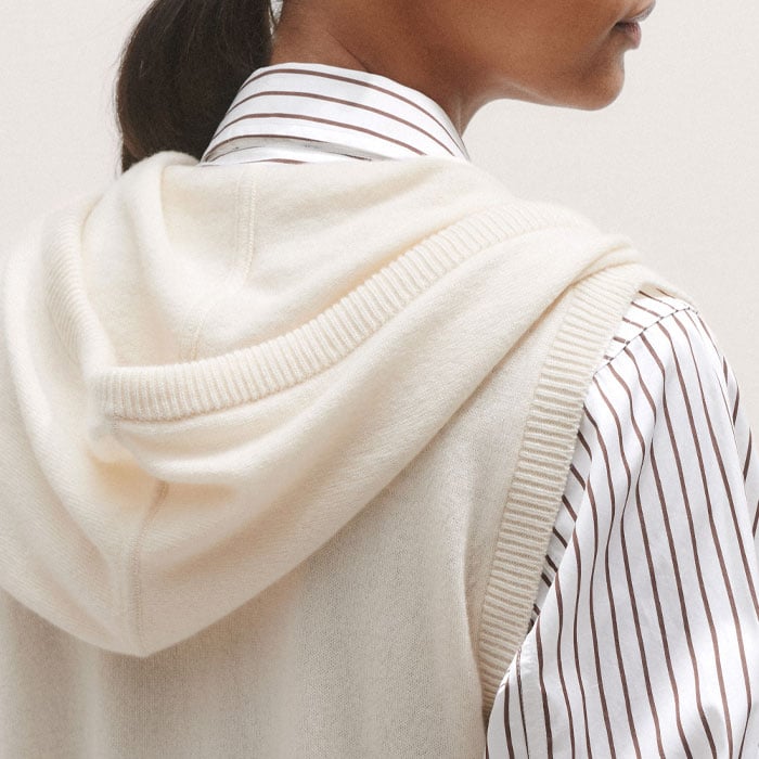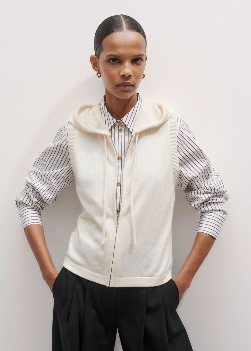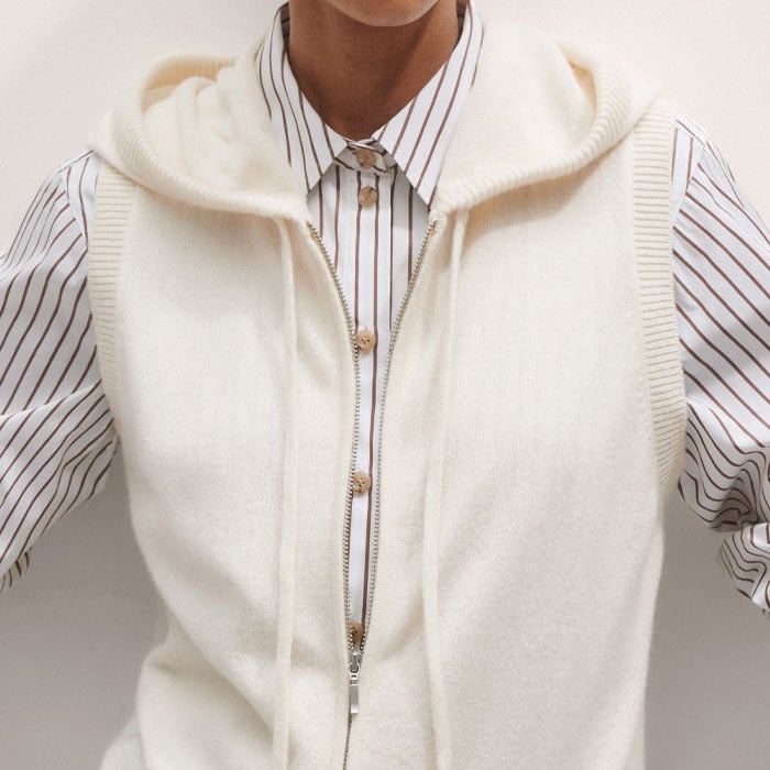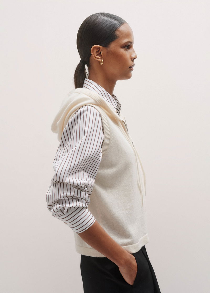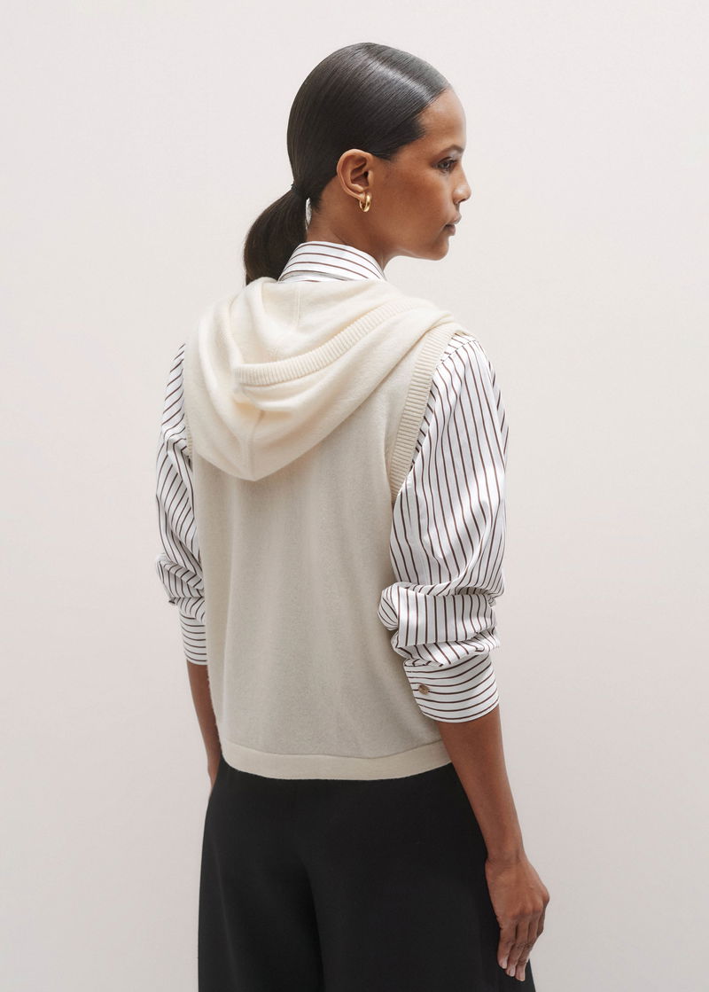 Cashmere Sleeveless Relaxed Zip Hoody Cream