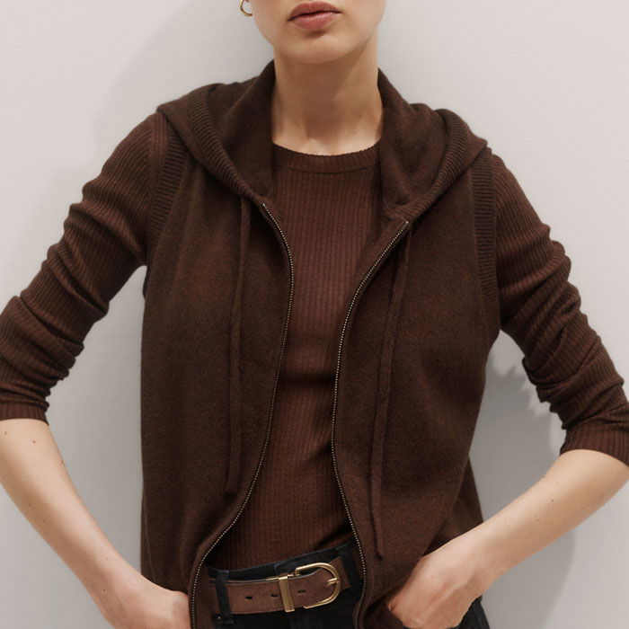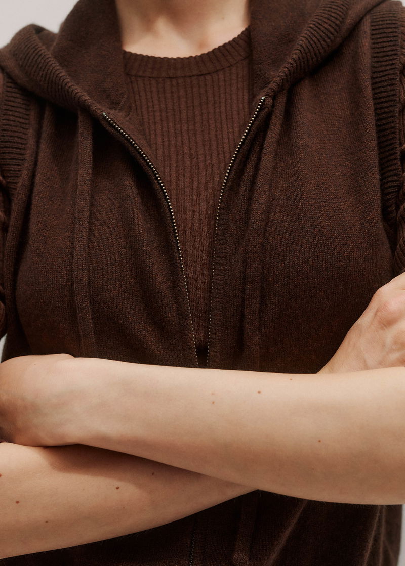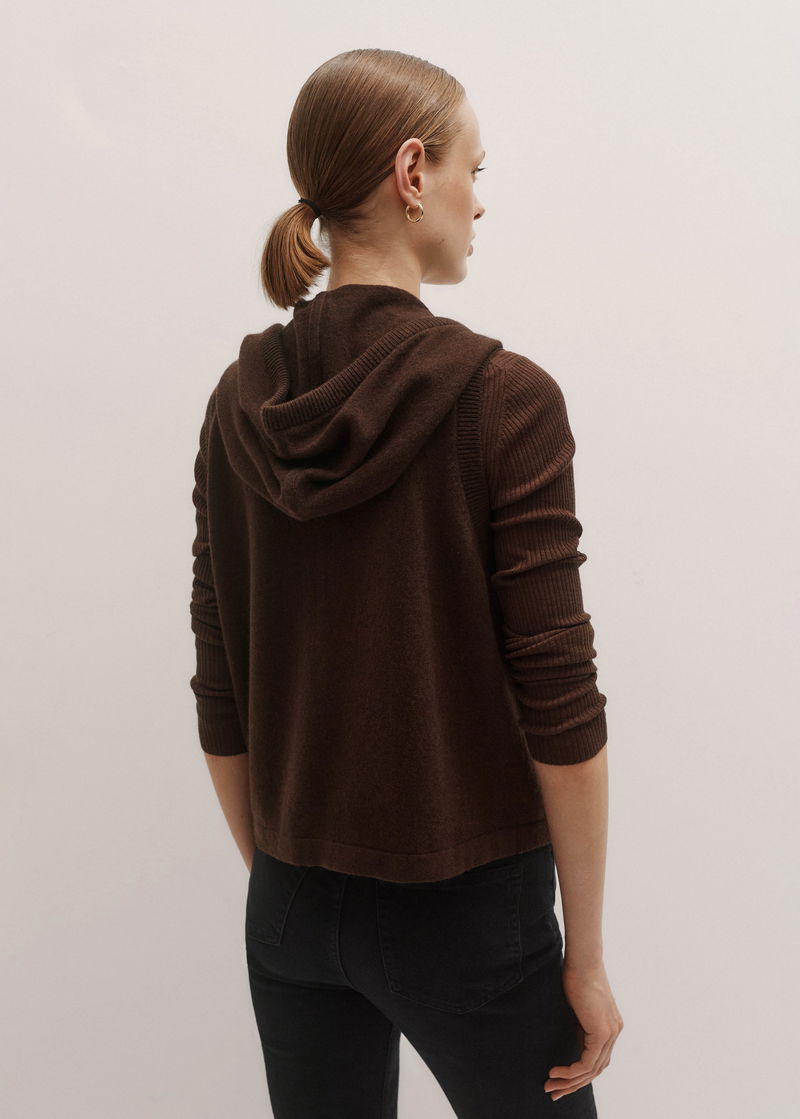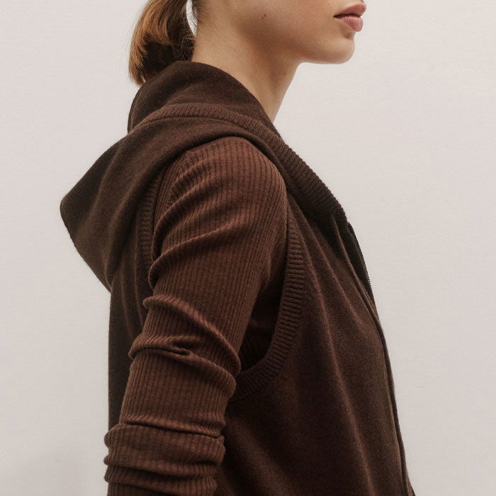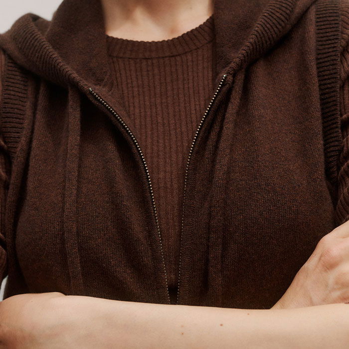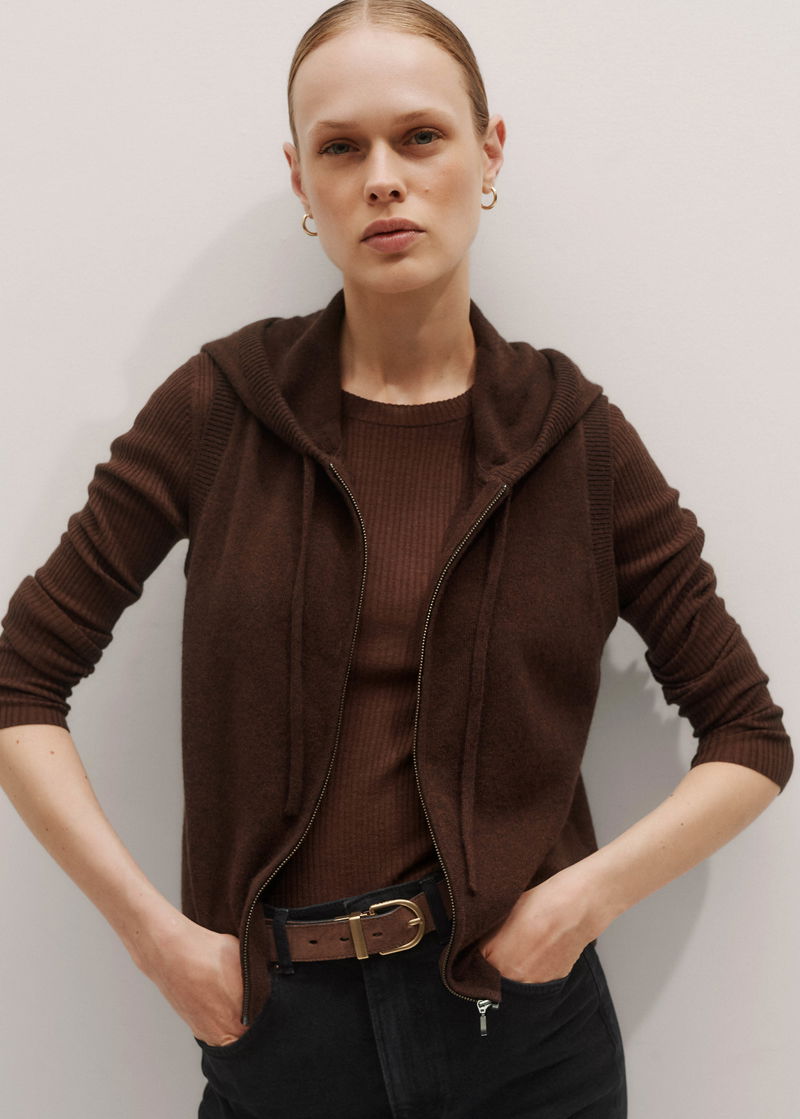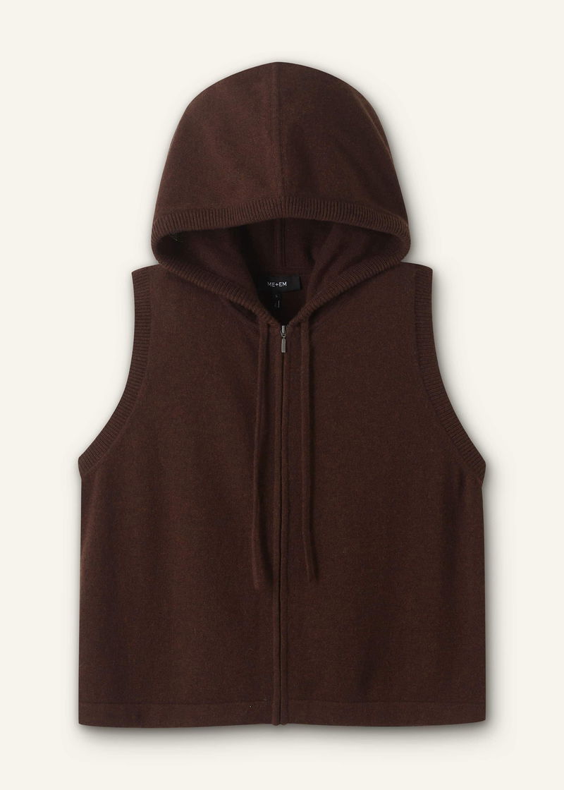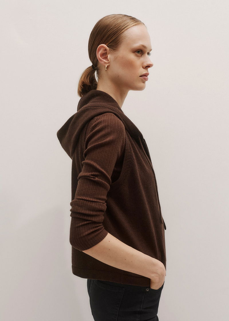 Cashmere Sleeveless Relaxed Zip Hoody Espresso Brown