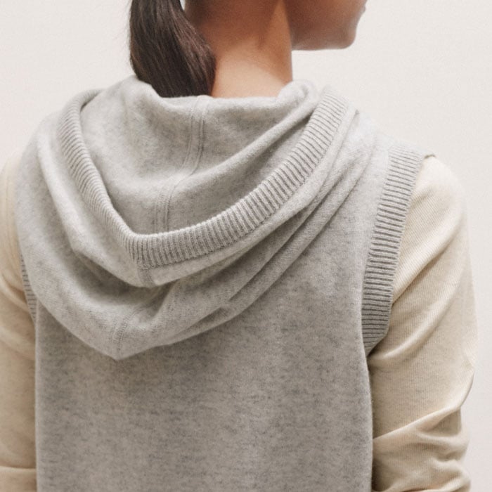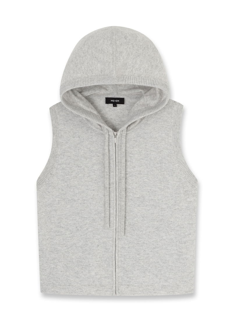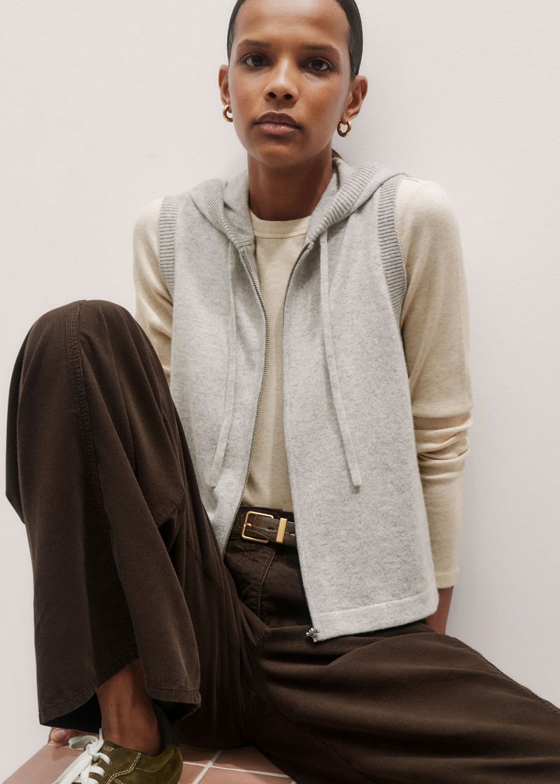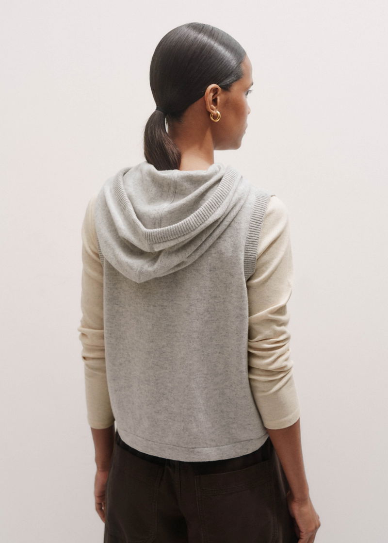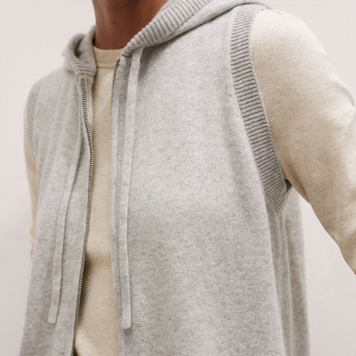 Cashmere Sleeveless Relaxed Zip Hoody Silver Grey Mélange