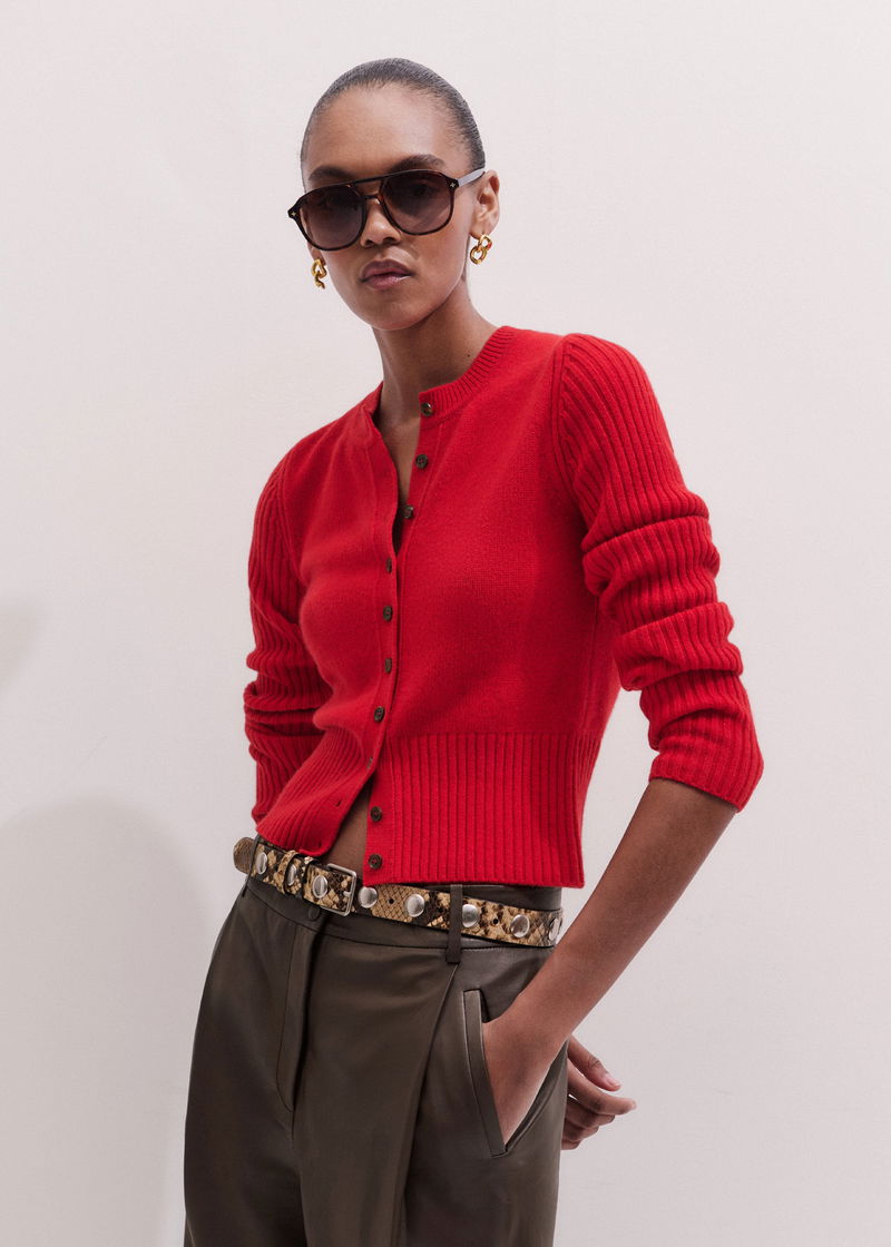 Cashmere Slim Waisted Cardigan True Scarlet Red