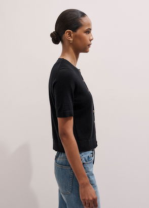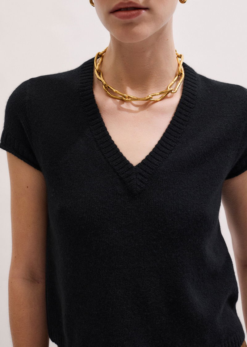 Cashmere V-Neck Shrunken Baby Tee Black