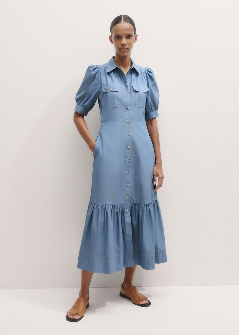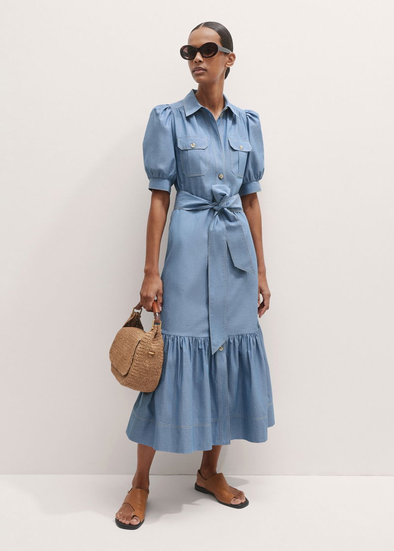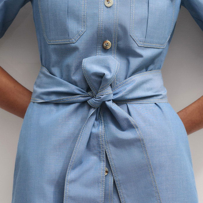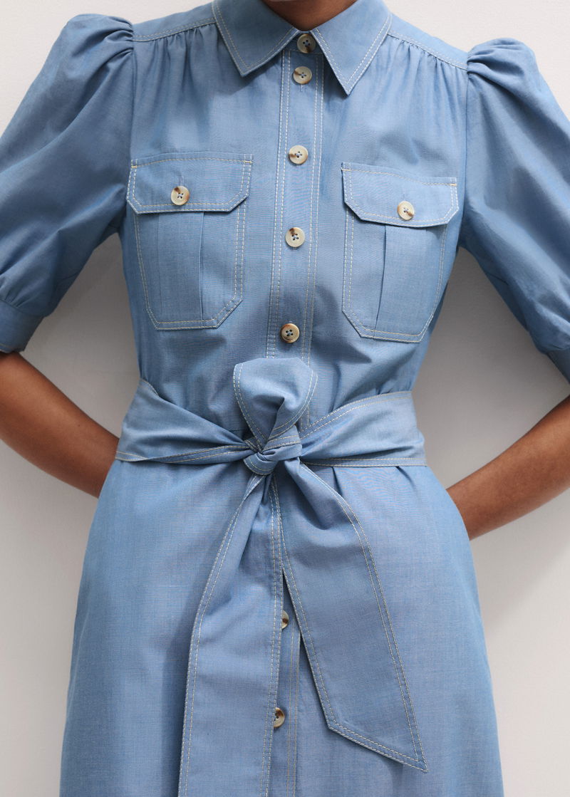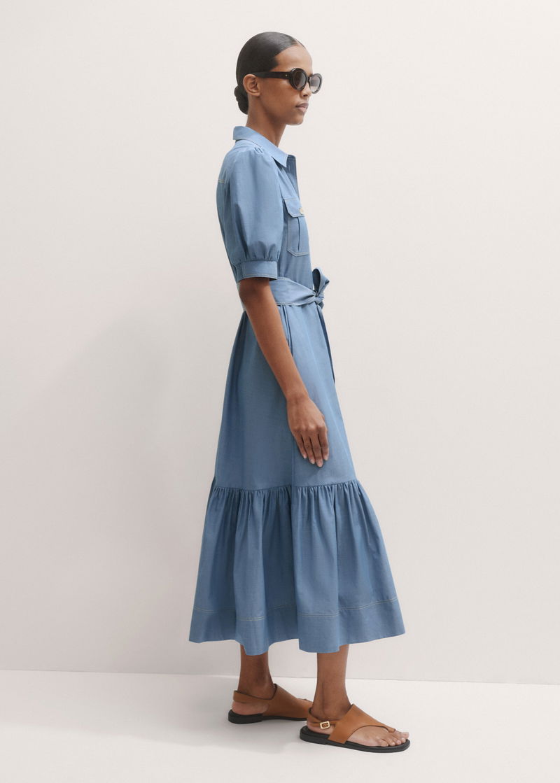Chambray Midi Shirt Dress + Belt Chambray Blue